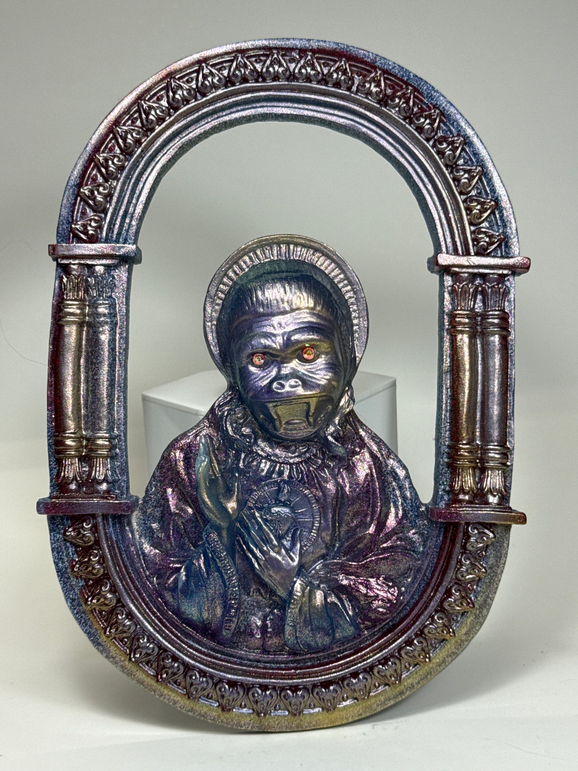 Jesus wall plaque with an ape head. 9 1/2” x 6 1/2”