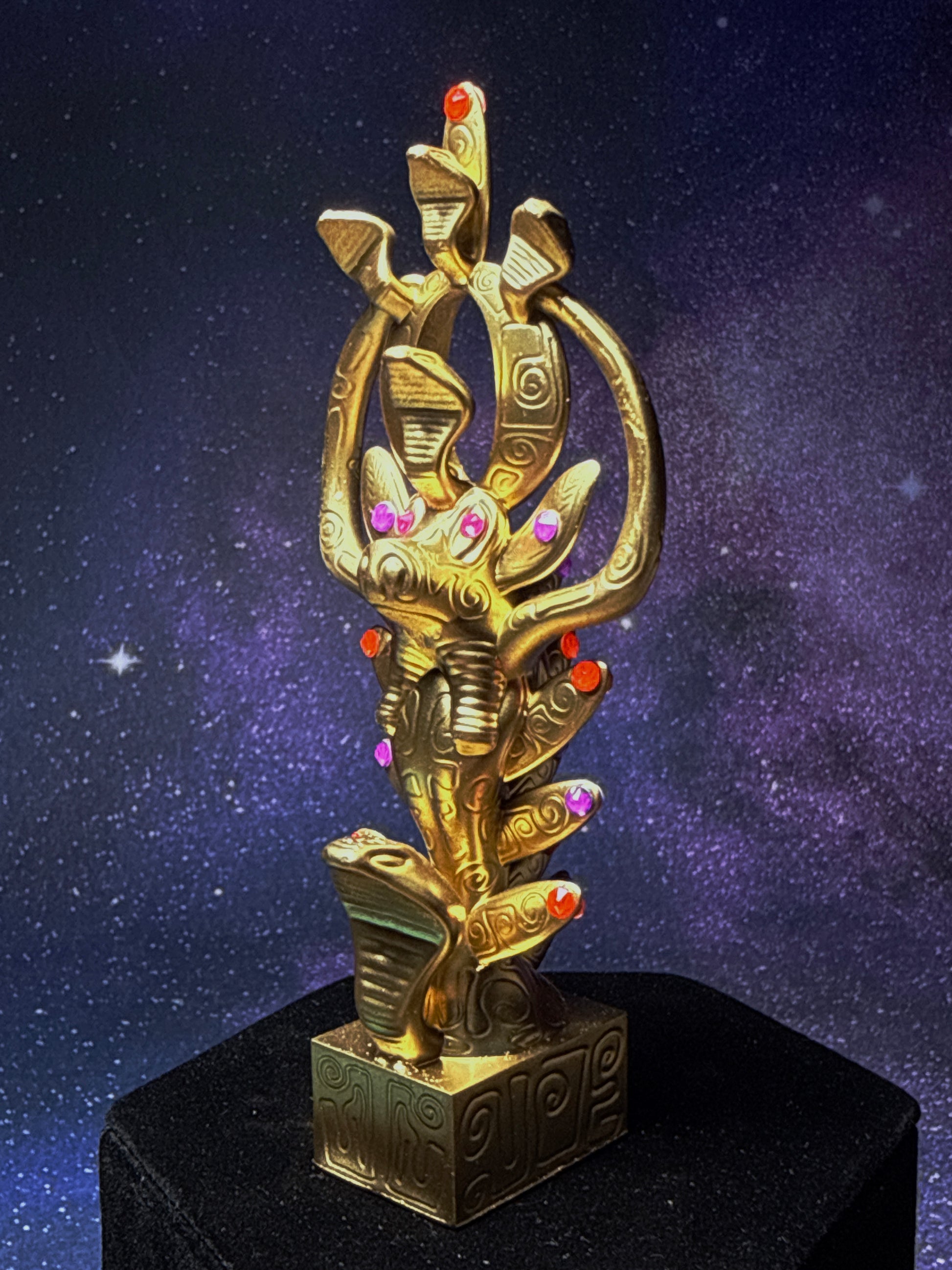 Egyptian Deer with Snakes: Gold with Neon Rhinestones
