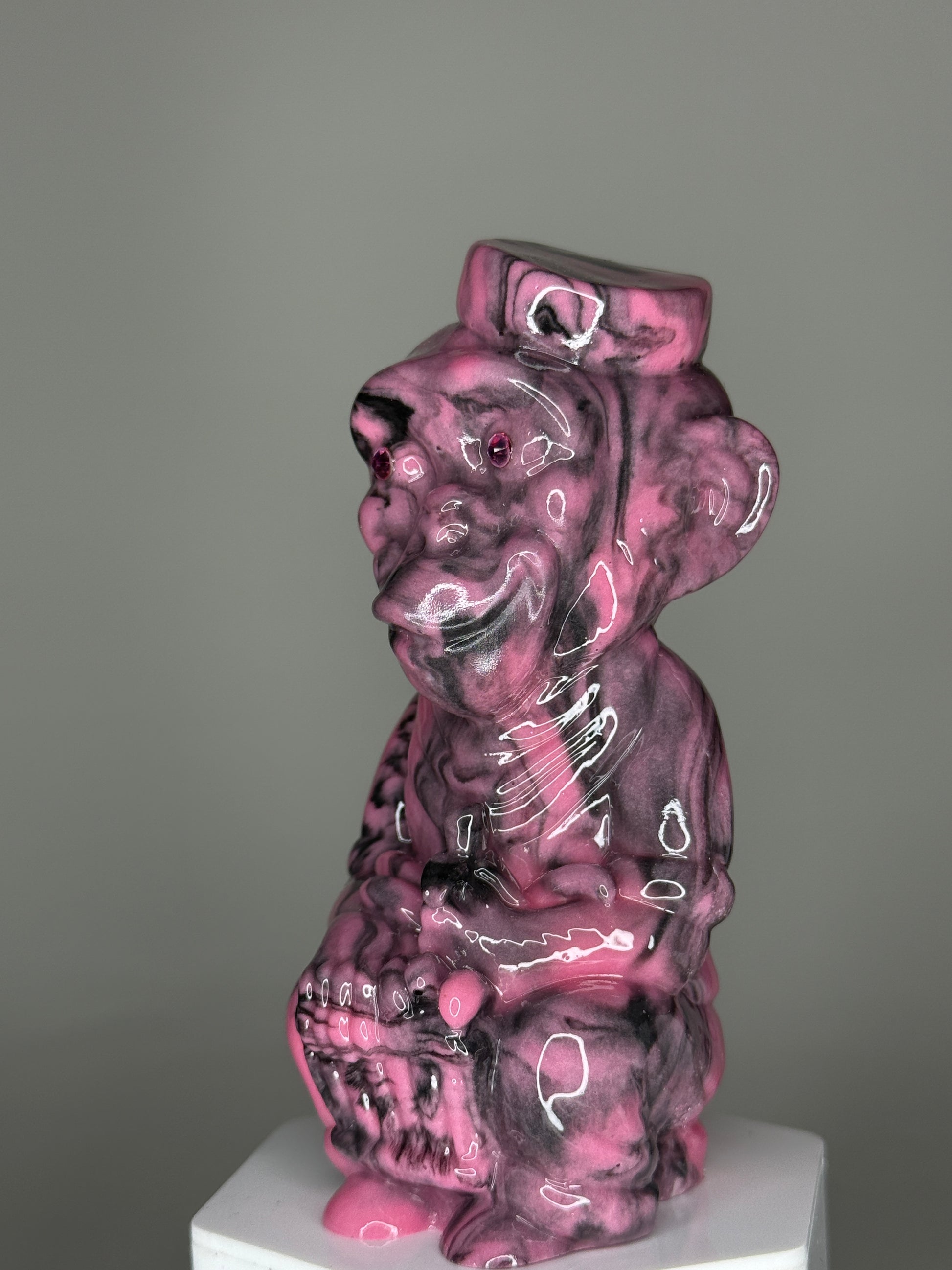 Happy monkey with a basket of bananas based on an old chalkware carnival prize bank from the 30s or 40s