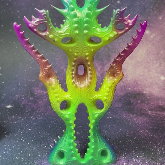 Resin printed, neon colors and dusted with aluminum flake. About 7 3/4”