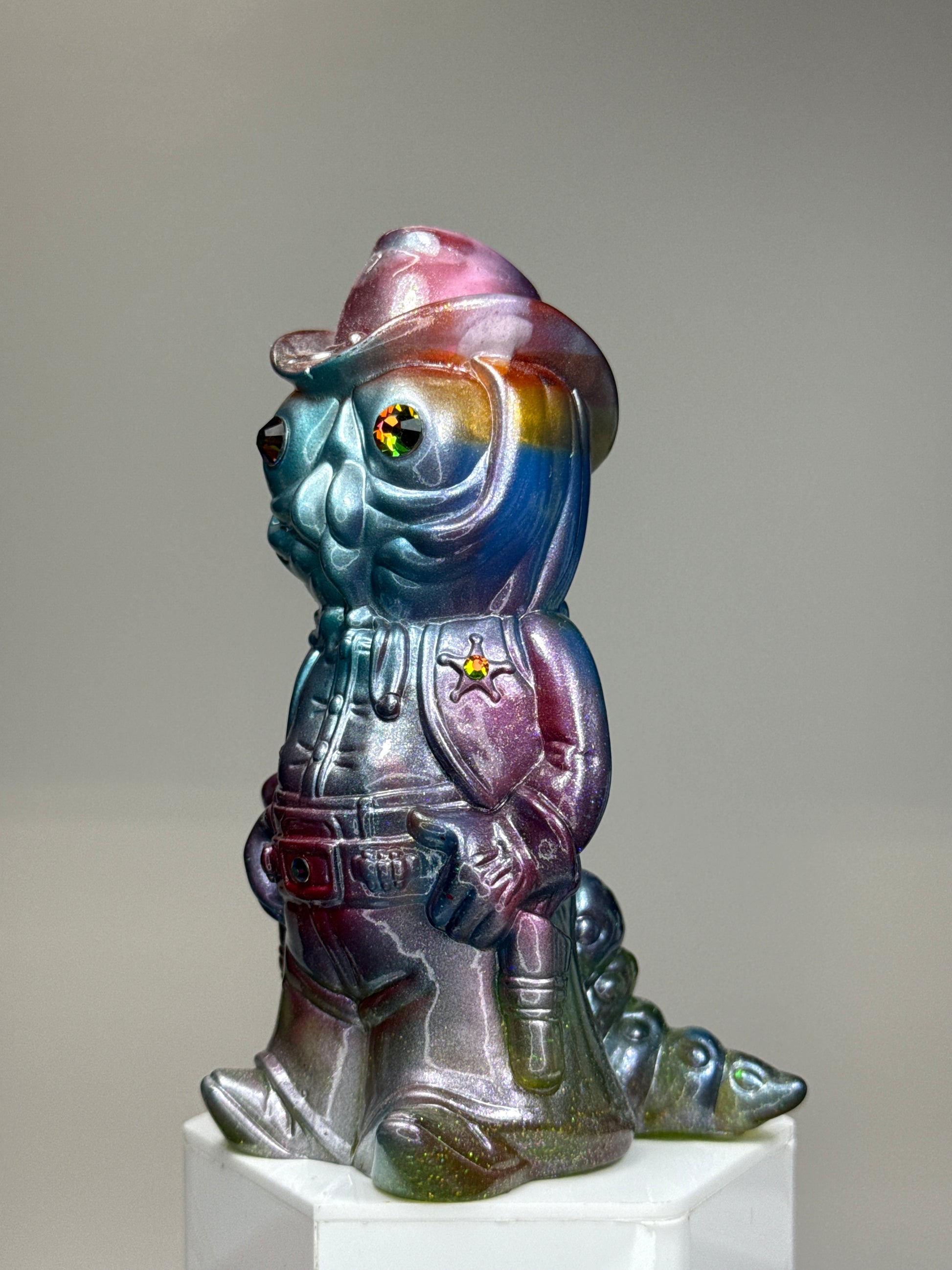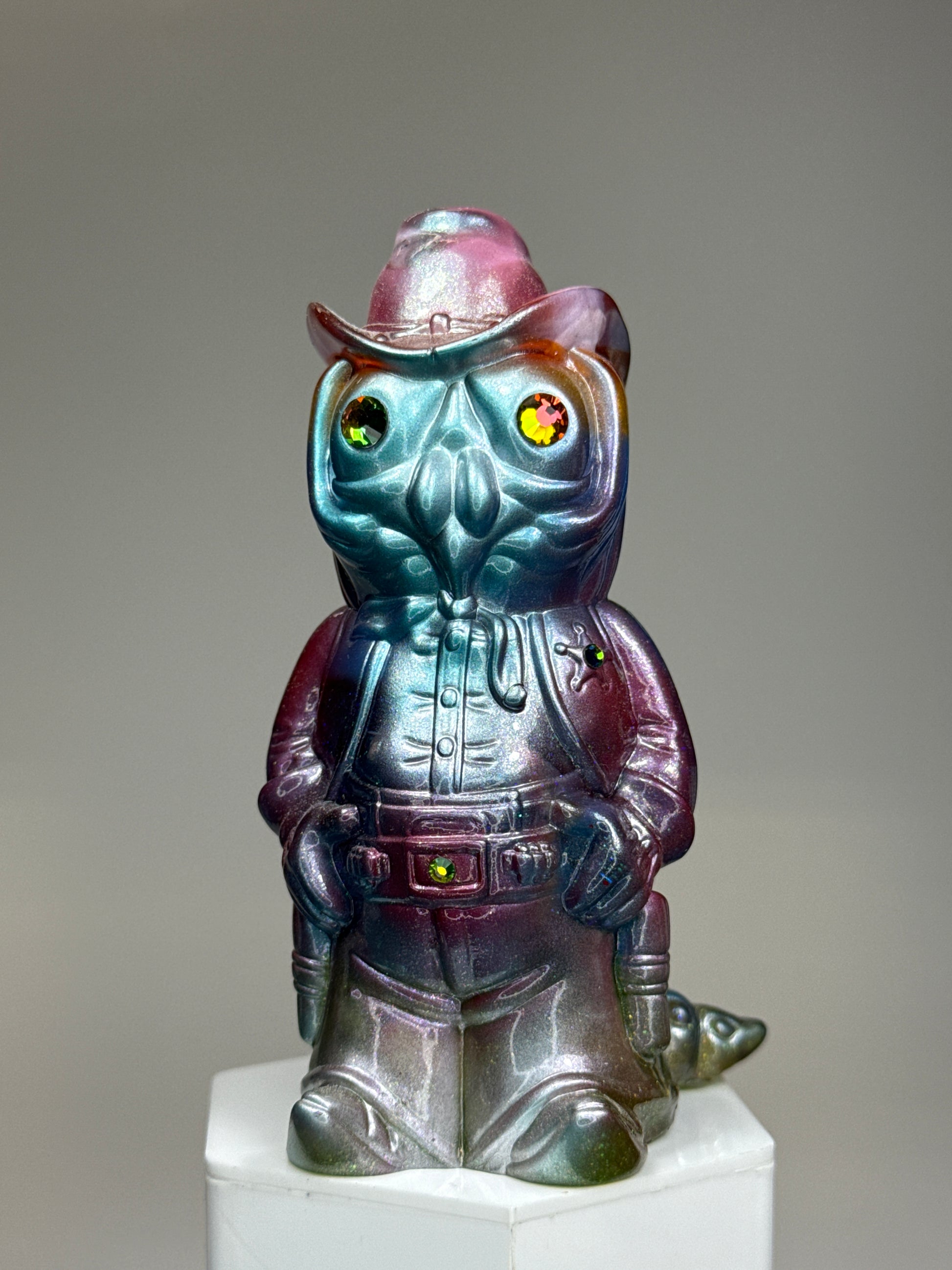 Quiet and unmoving. His very presence is enough to keep the peace.