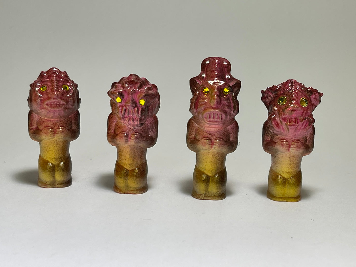 The third and final prototype prints of the Space Ape Revenge Squad. Seeing them bigger the only change I made here was to shrink down Mahoney Jones so his height matched everyone else. He was going to be taller because of his tall head but being a team player, sacrifices had to be made.