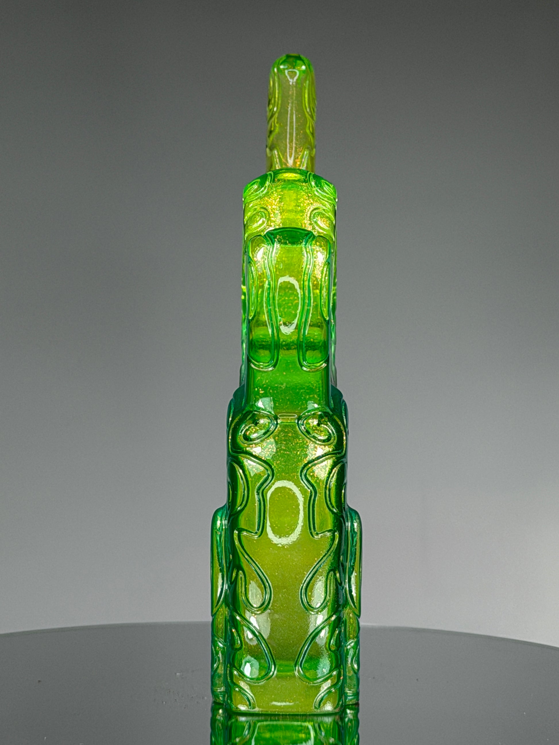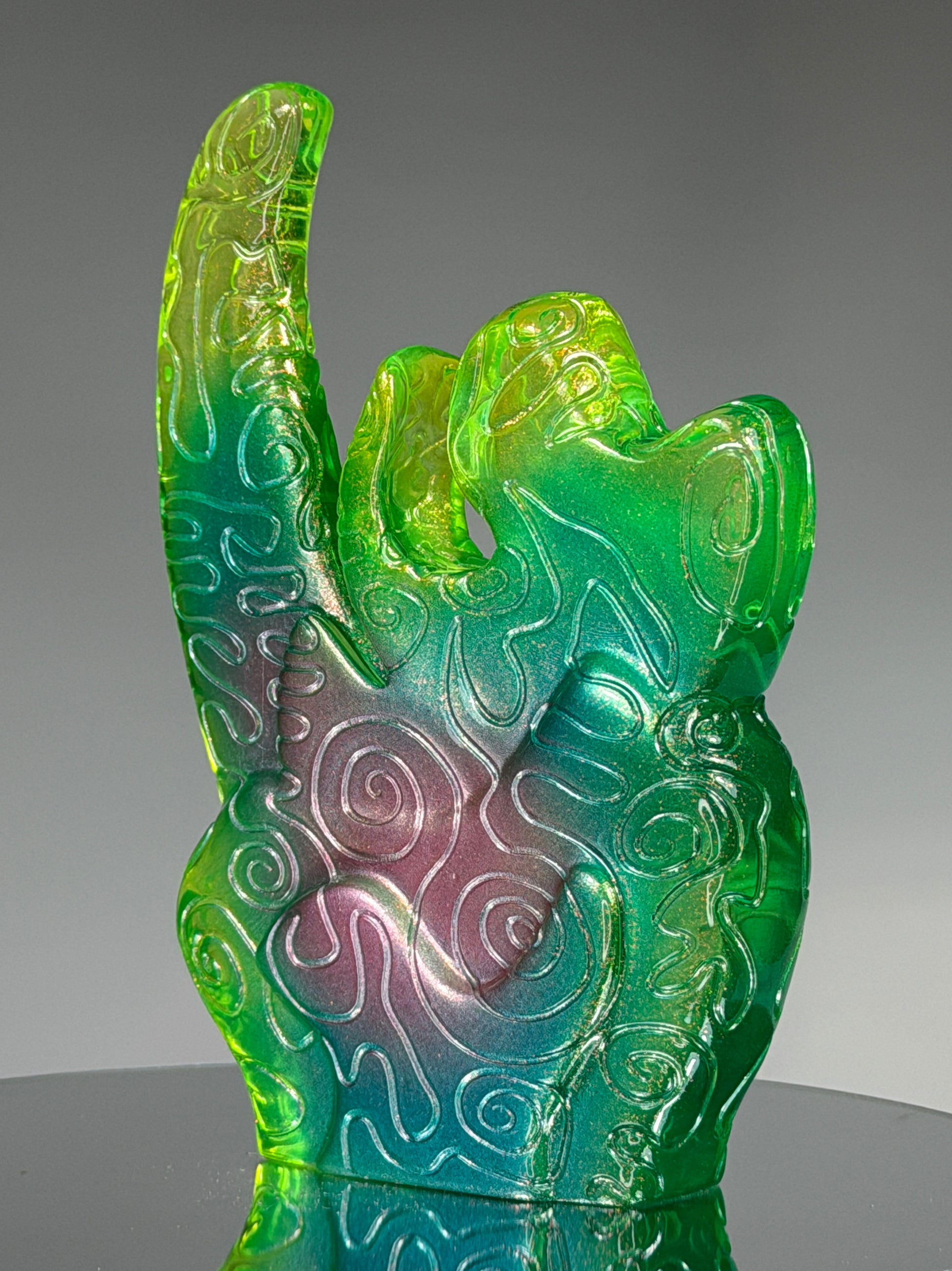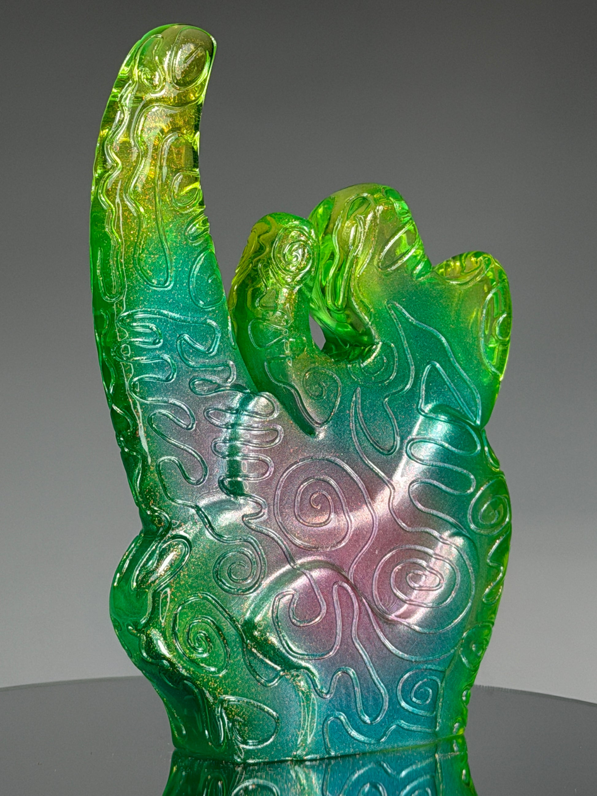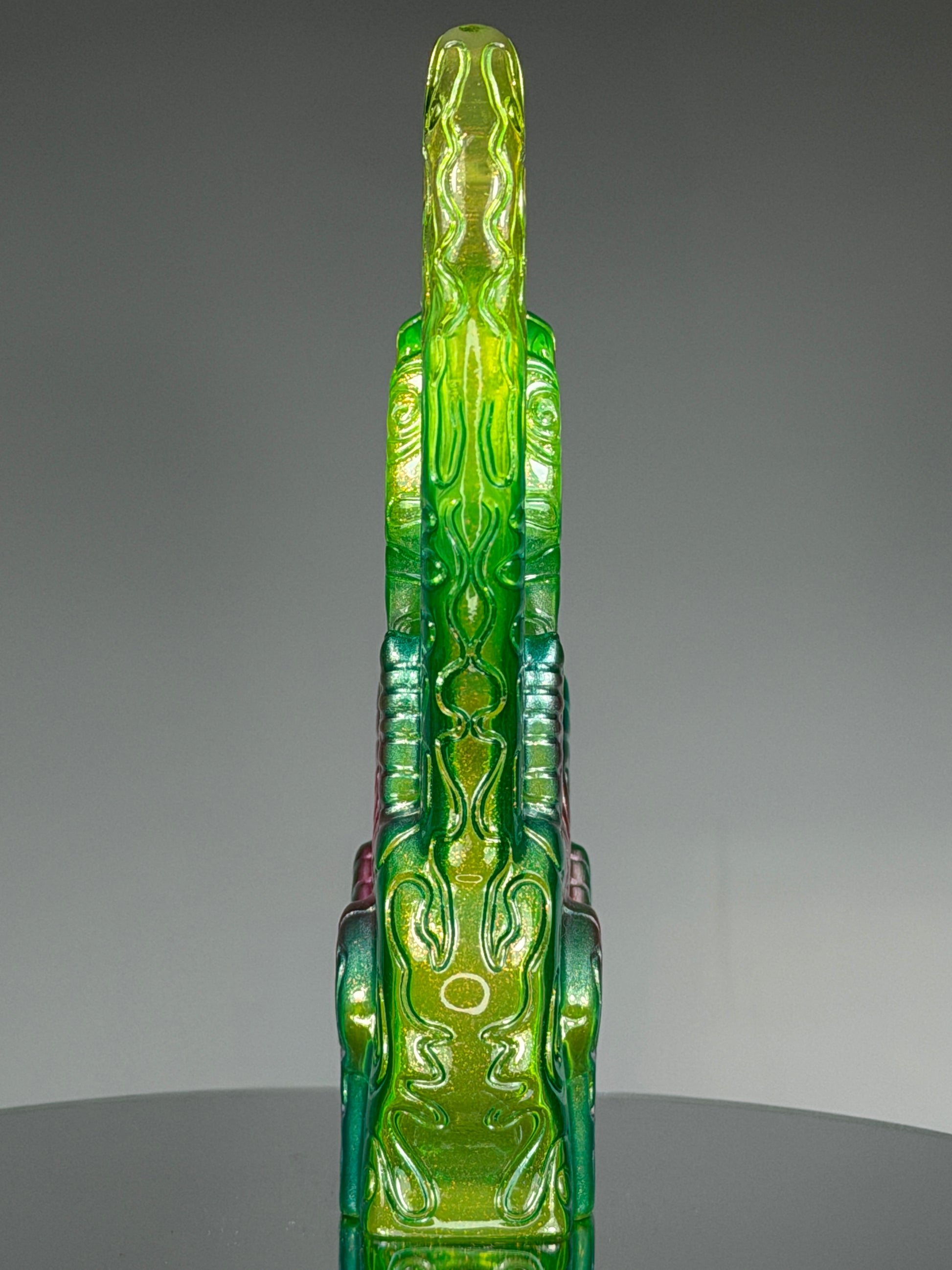 Thirteen apples balancing atop of an erupting volcano with a gaggle of geese using typewriters in the distance (conflicting views engaged)