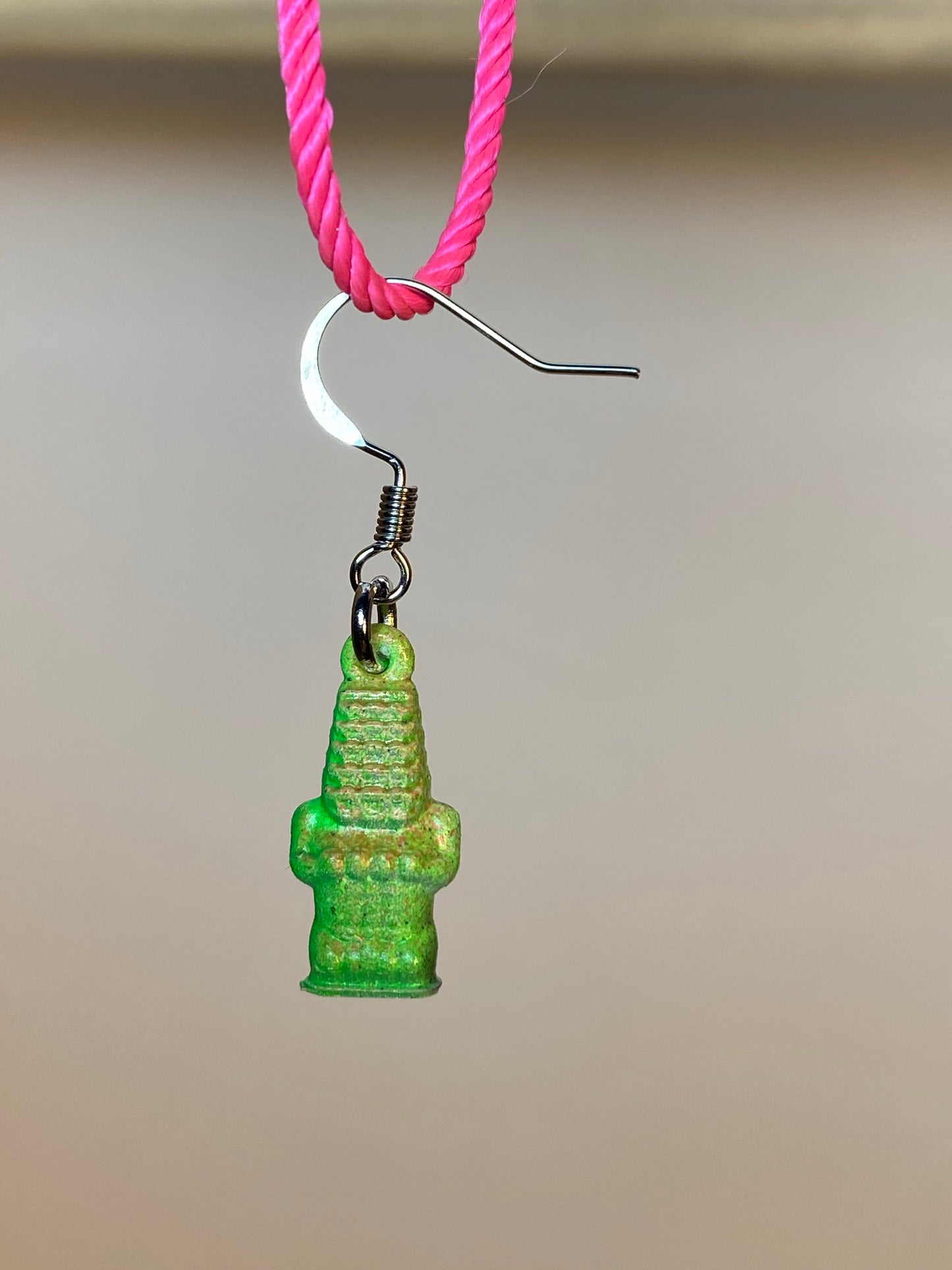 Tall Stack Ape Earrings: Green with Pink Speckles