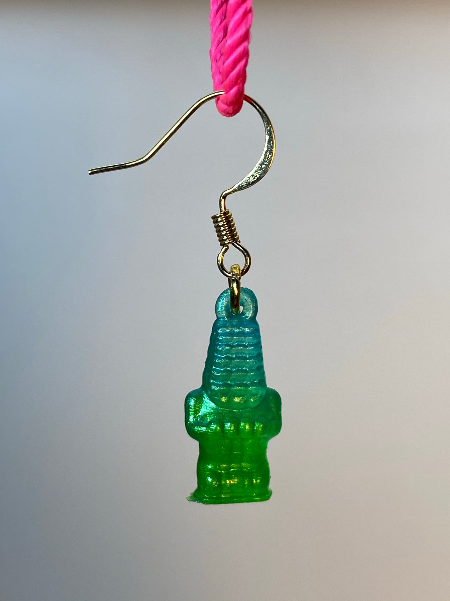 Tall Stack Ape Earrings: Transparent Blue/Green