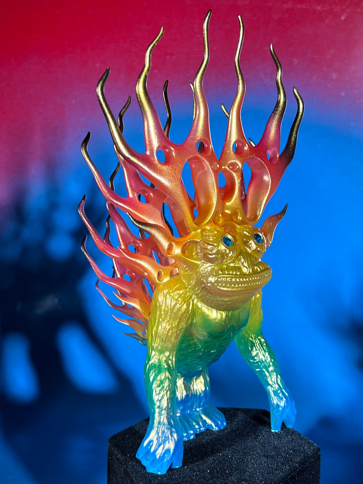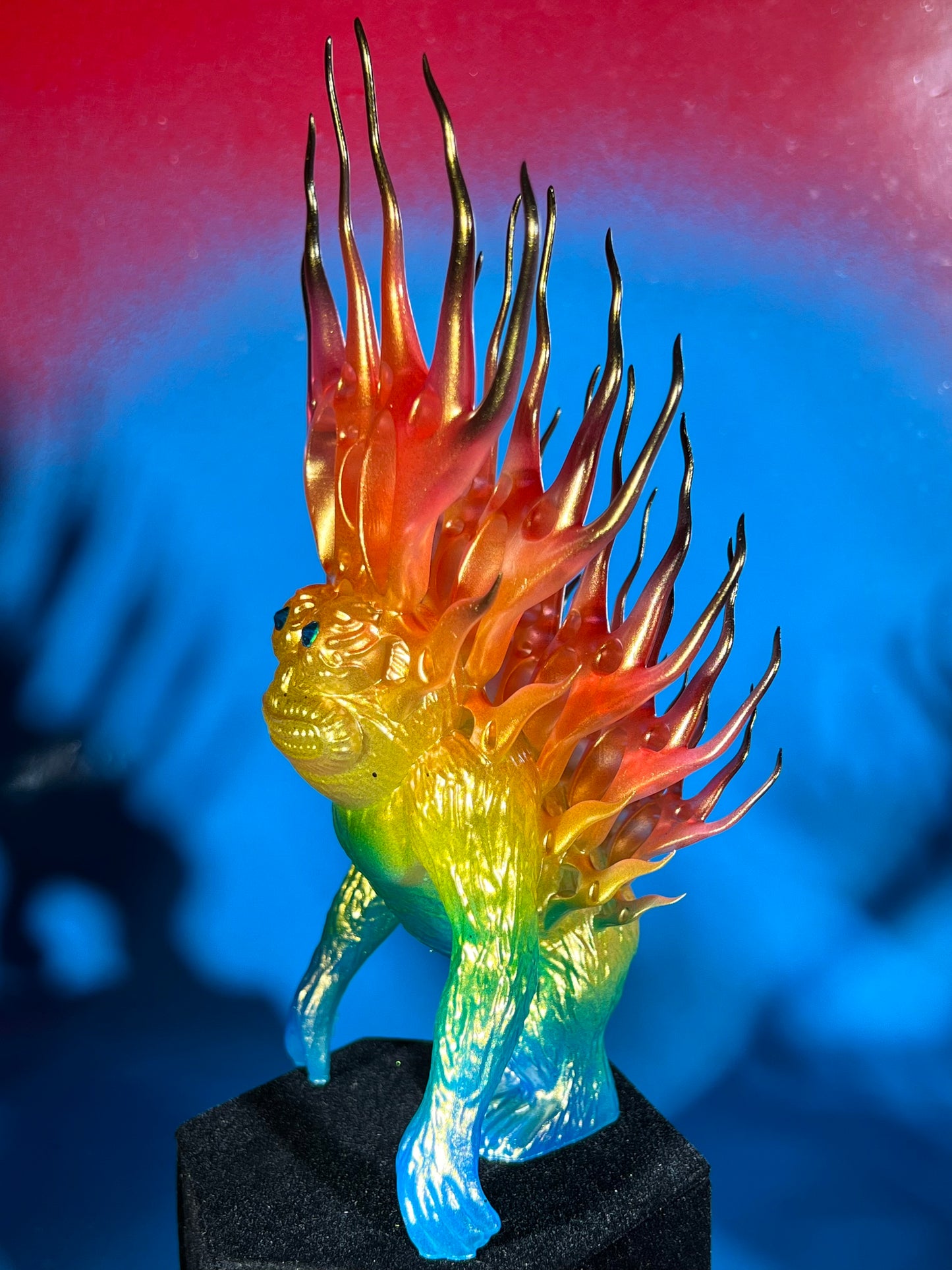 Resin printed. Painted rainbow with a dusting of chrome. About 8”