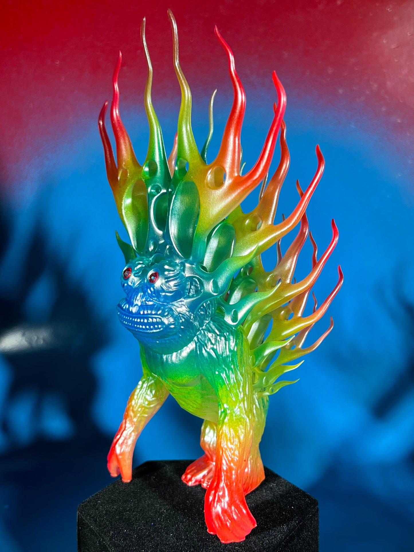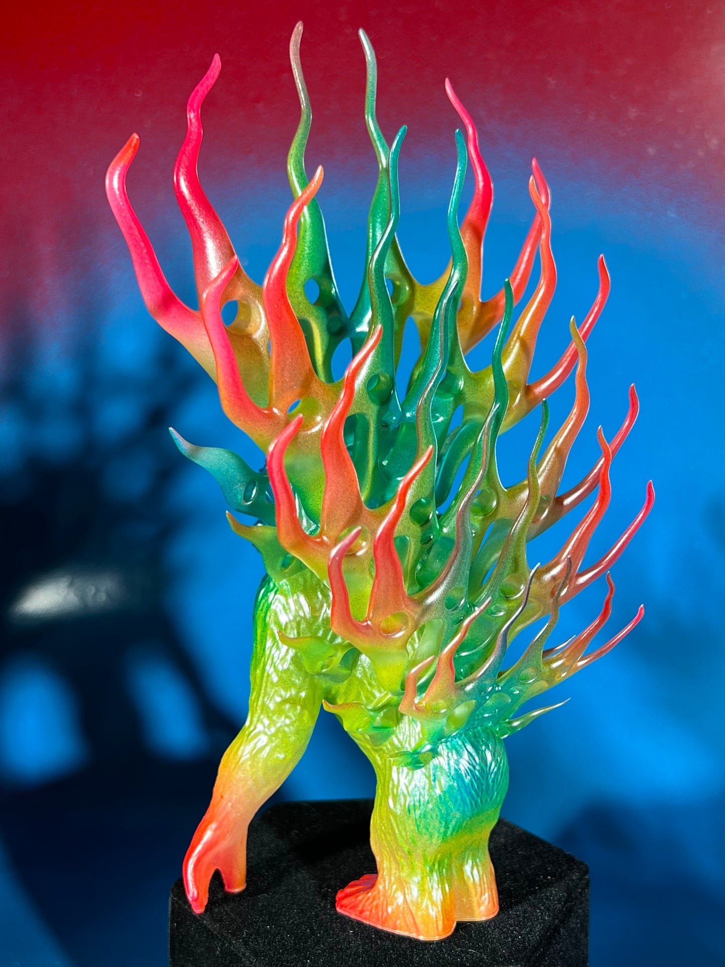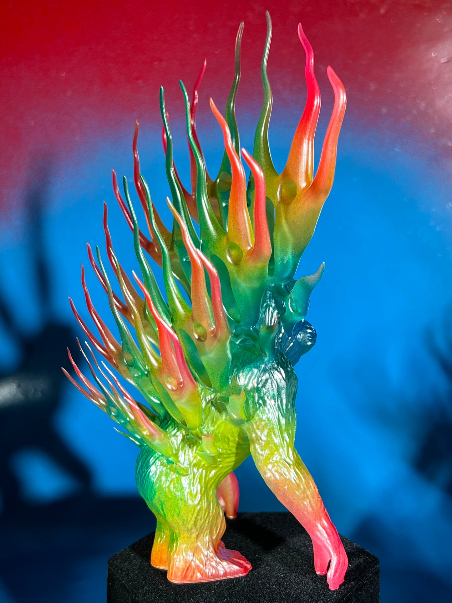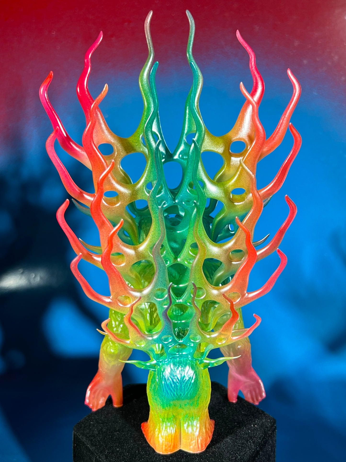 Resin printed. Painted rainbow with a dusting of chrome. About 8”