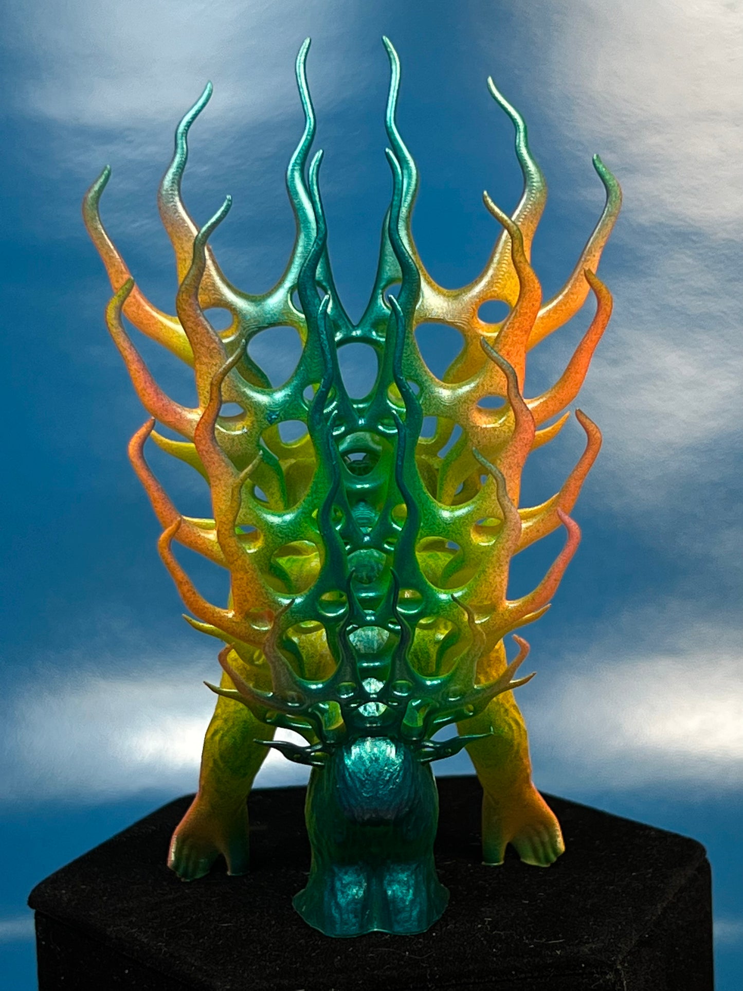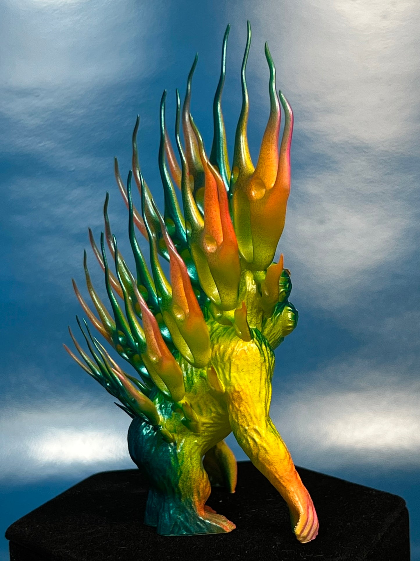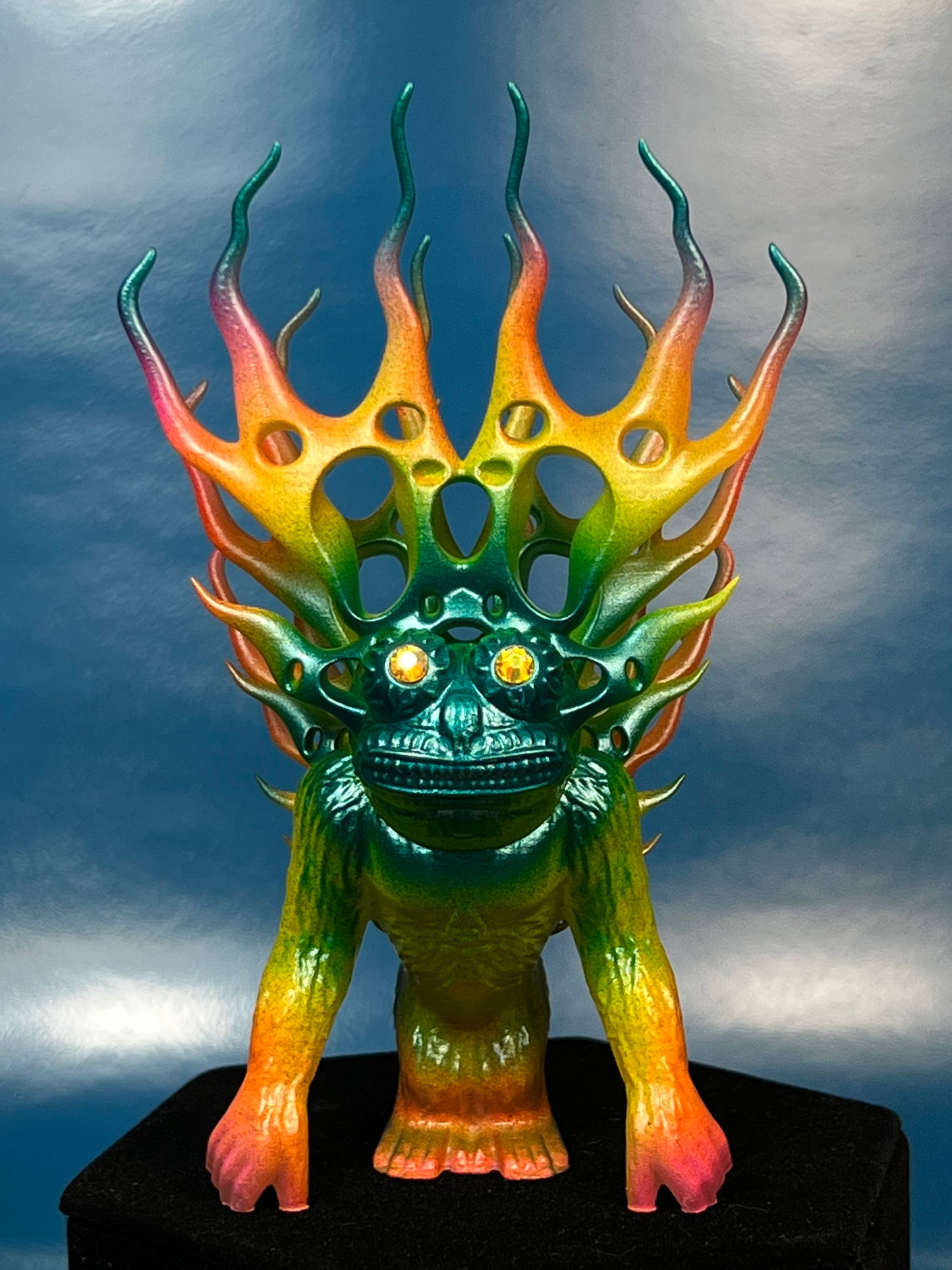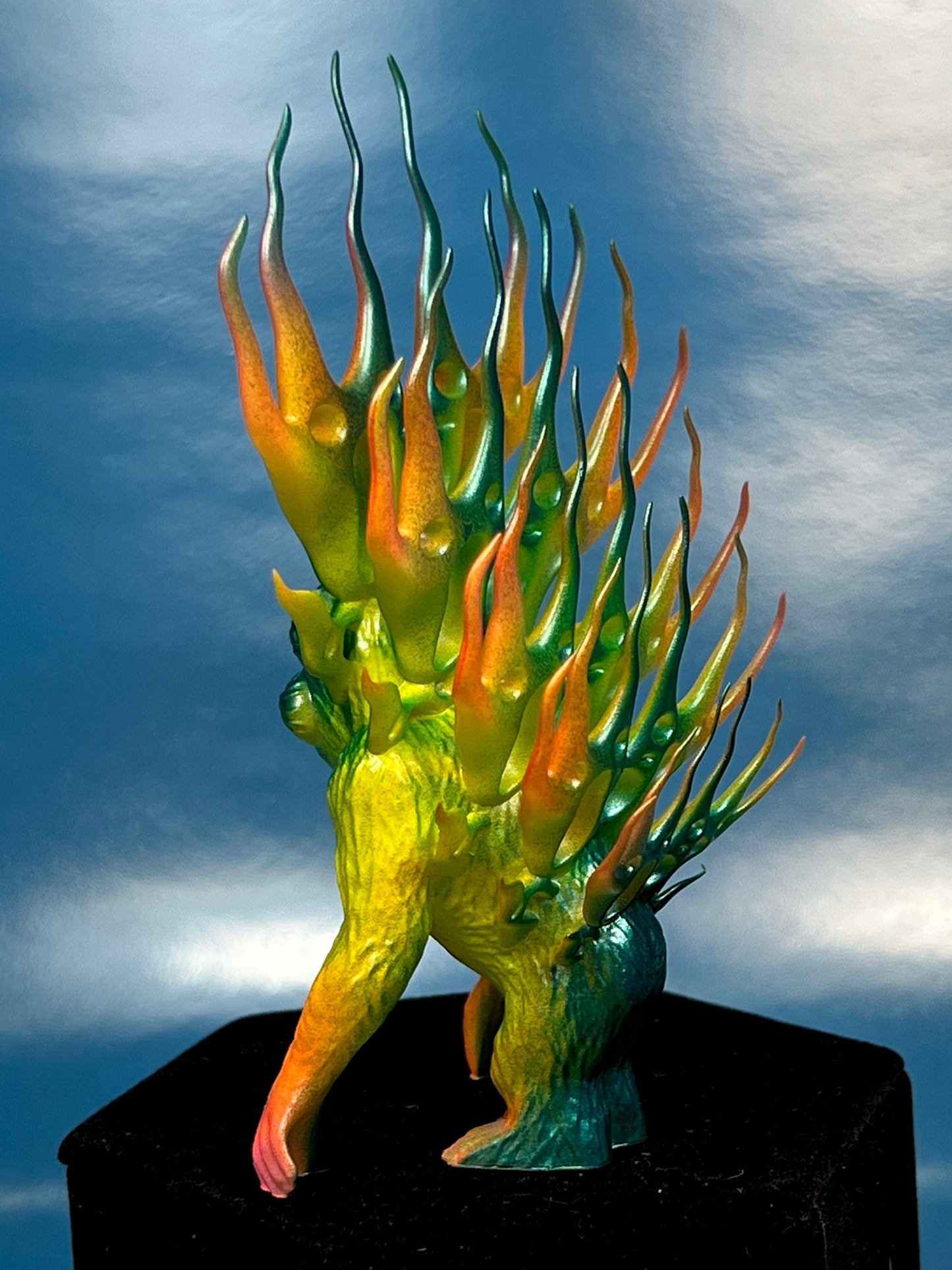 Resin printed. Painted in neon and metallic colors. About 5”