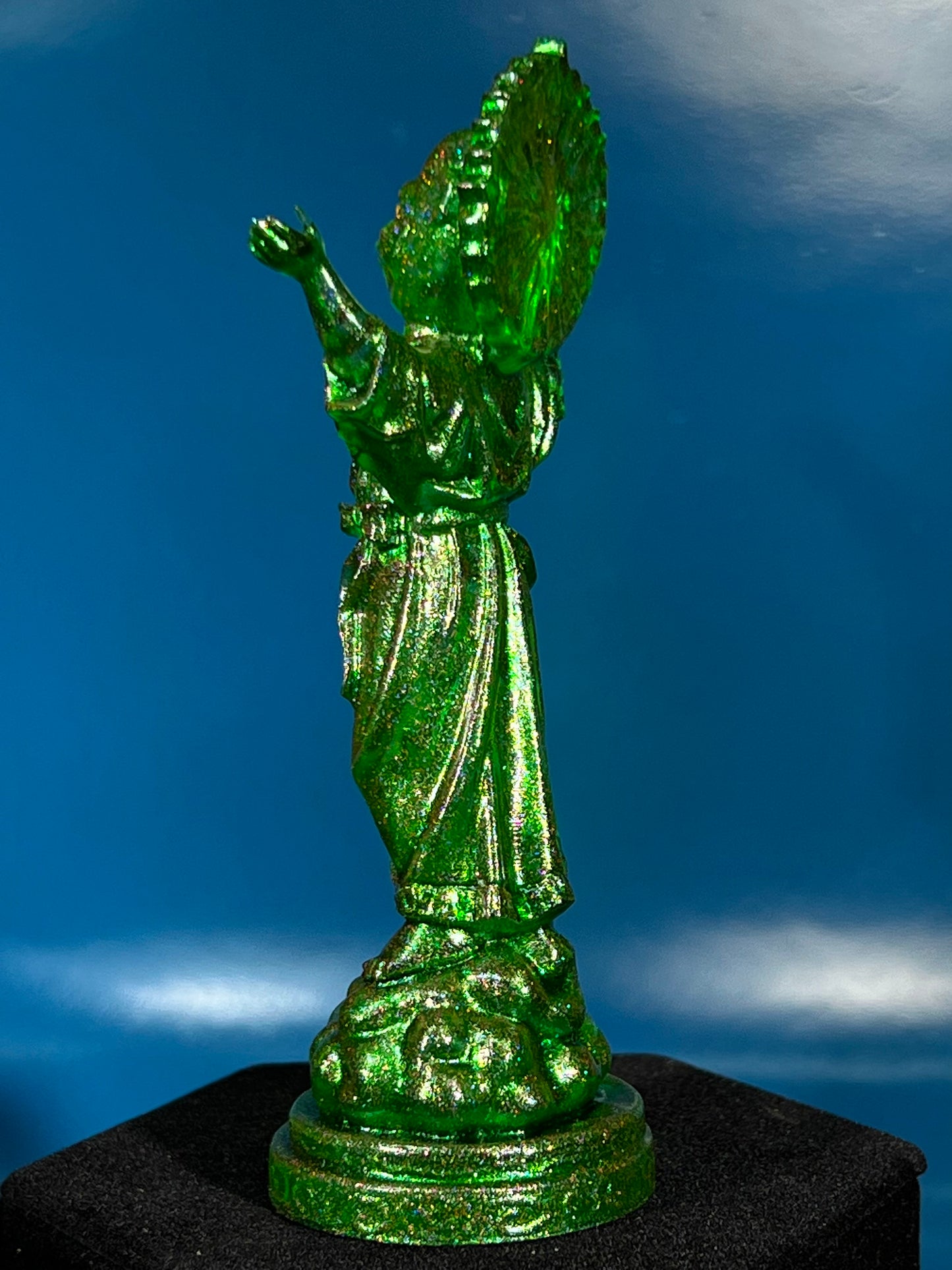 Resin printed, painted transparent with 4 colors holo glitter. 5”