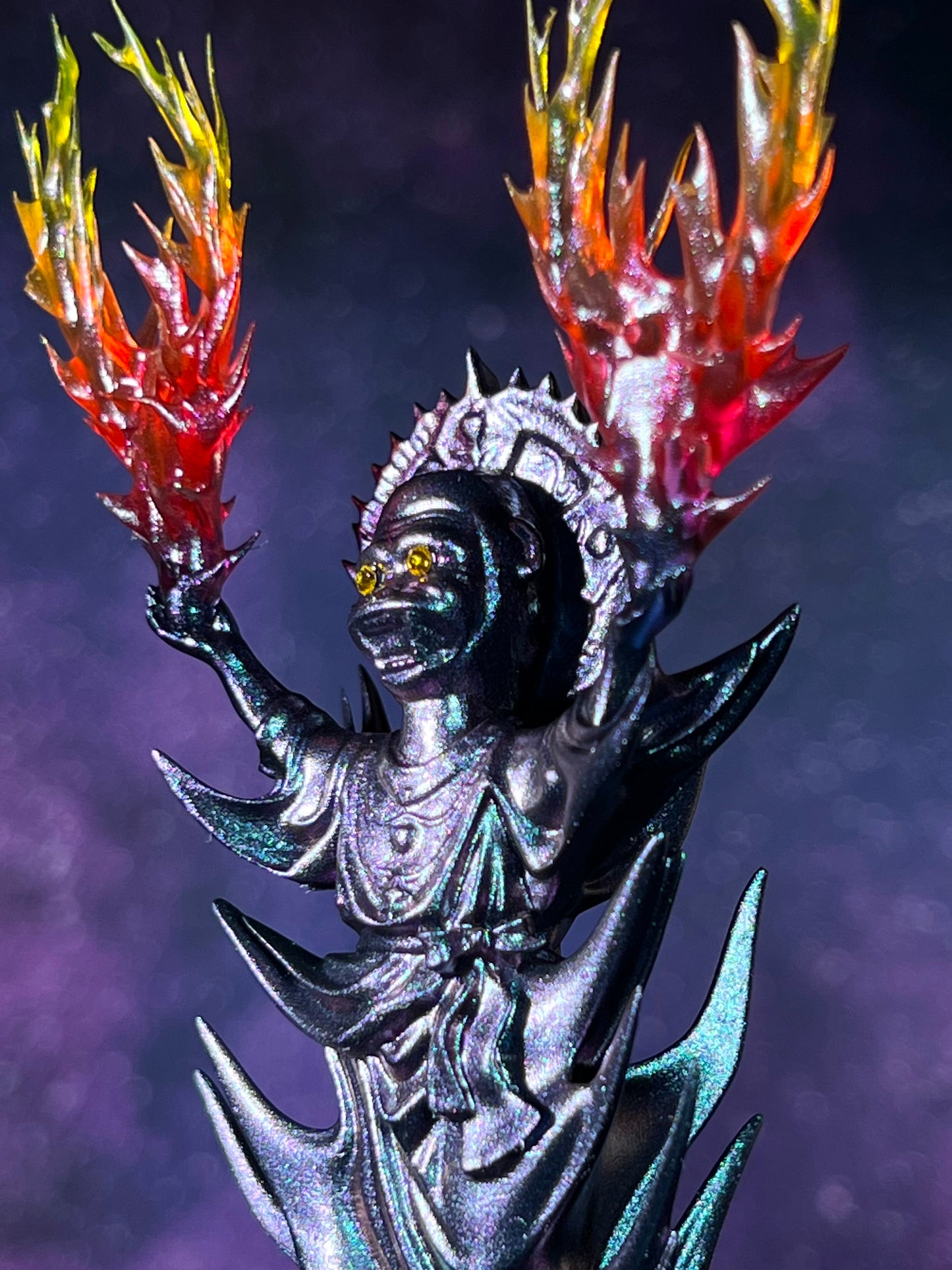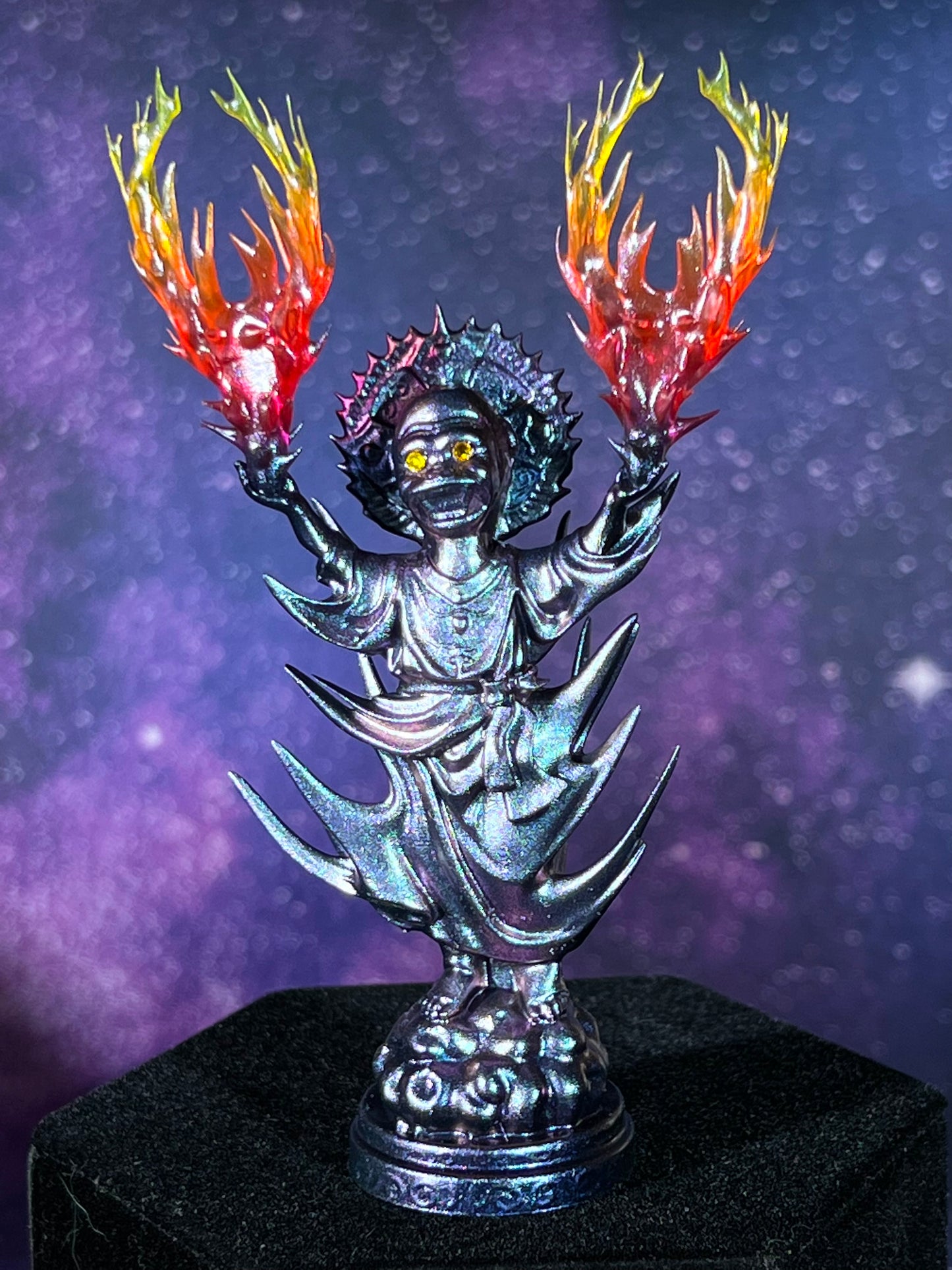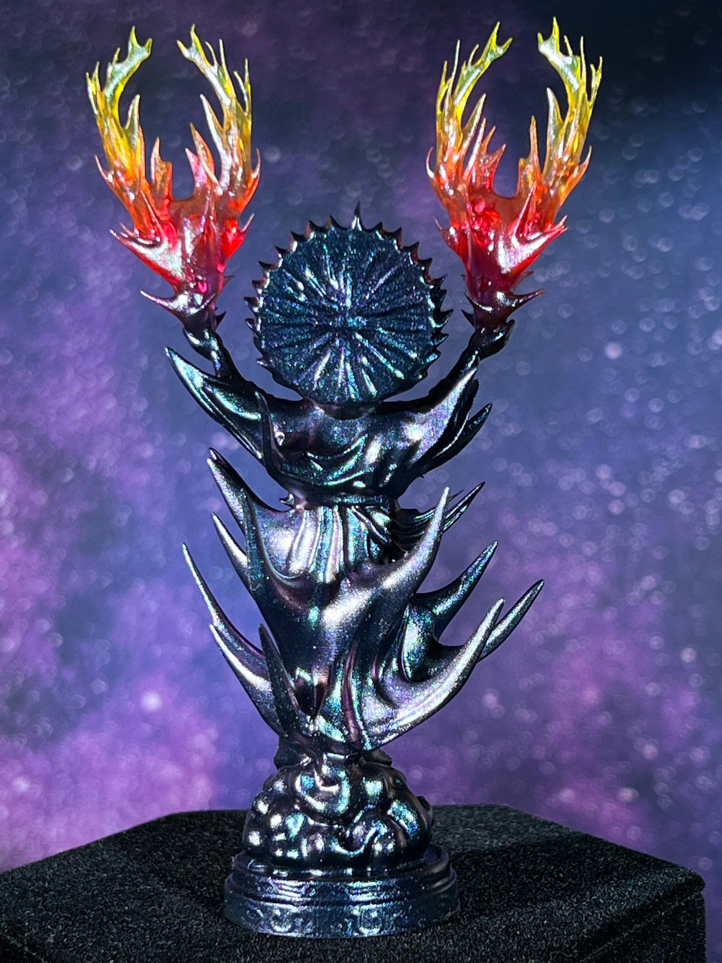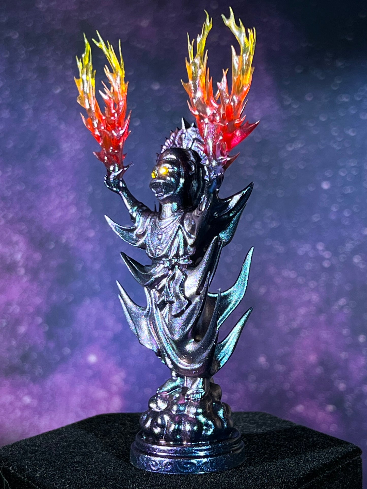 Resin printed, painted in transparent and color shifting paints. Holographic rainbow glitter. 5”