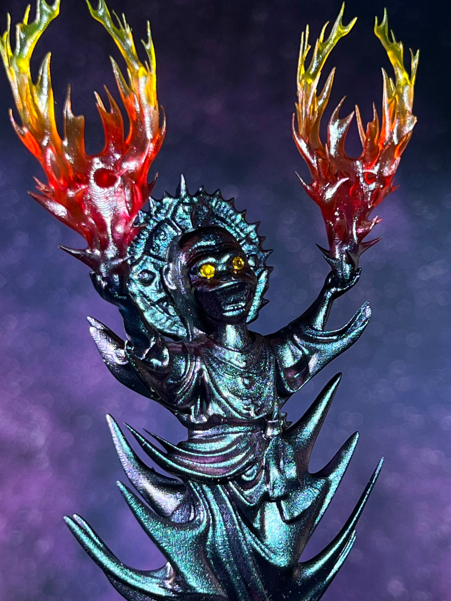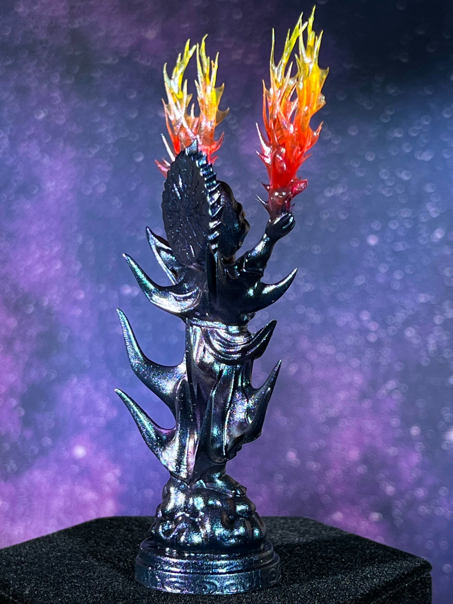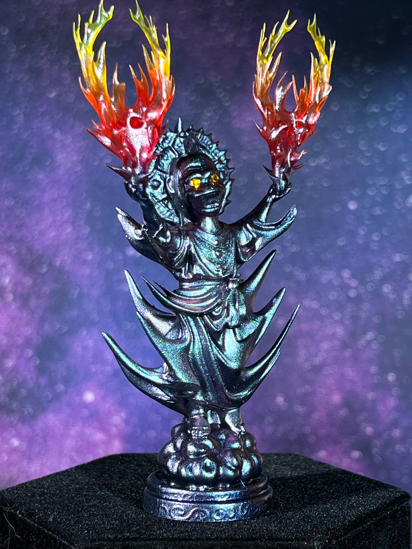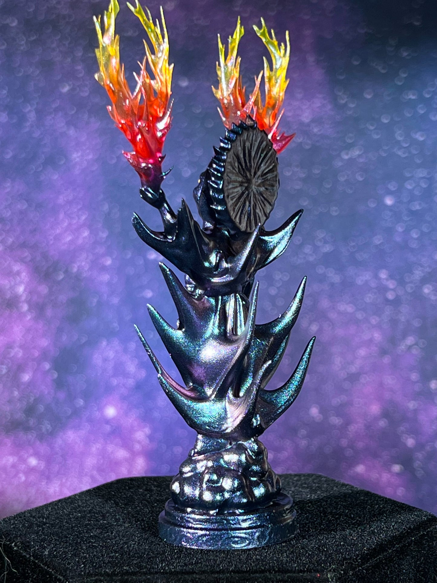 Resin printed, painted in transparent and color shifting paints. Holographic rainbow glitter. 5”