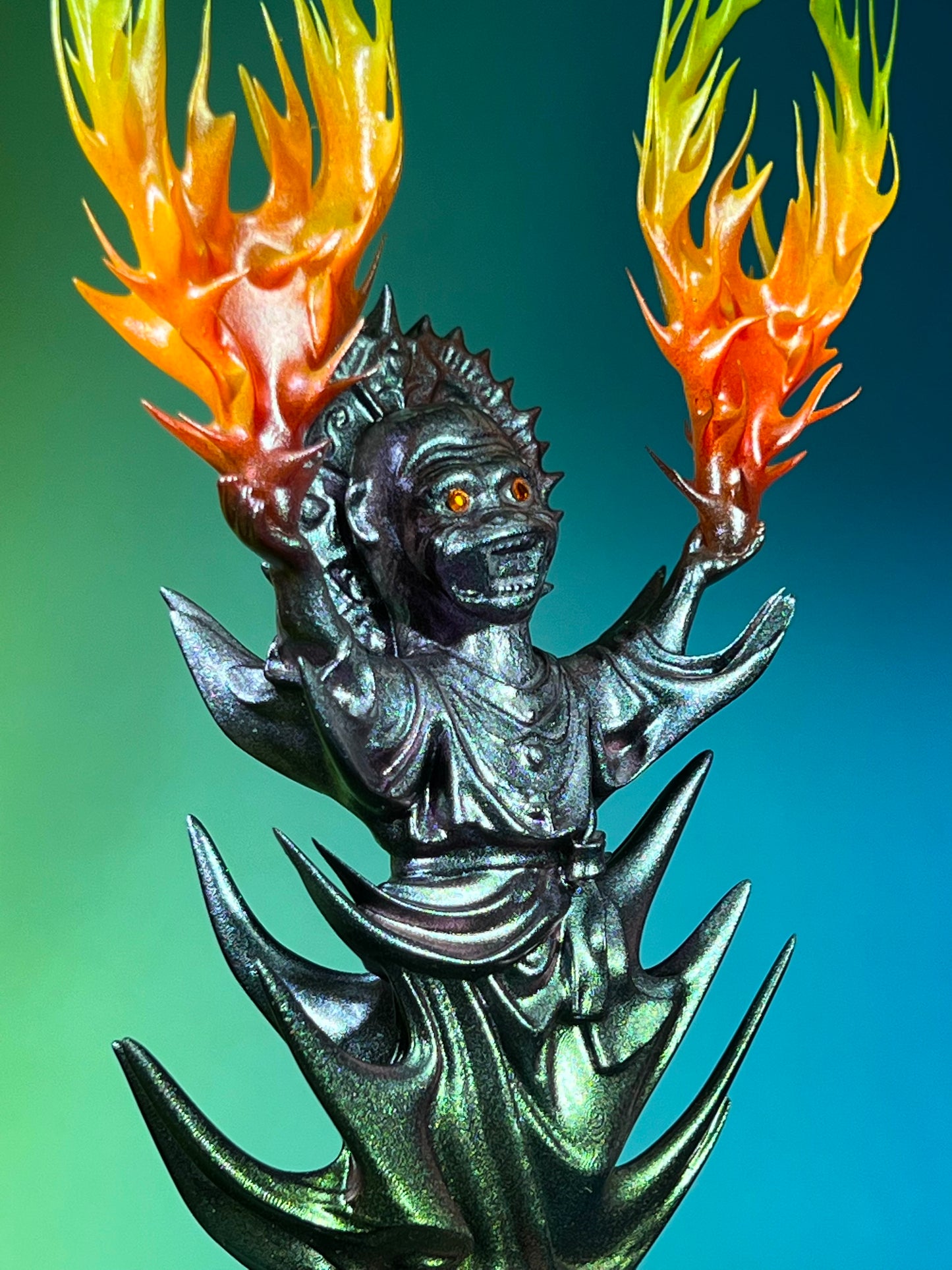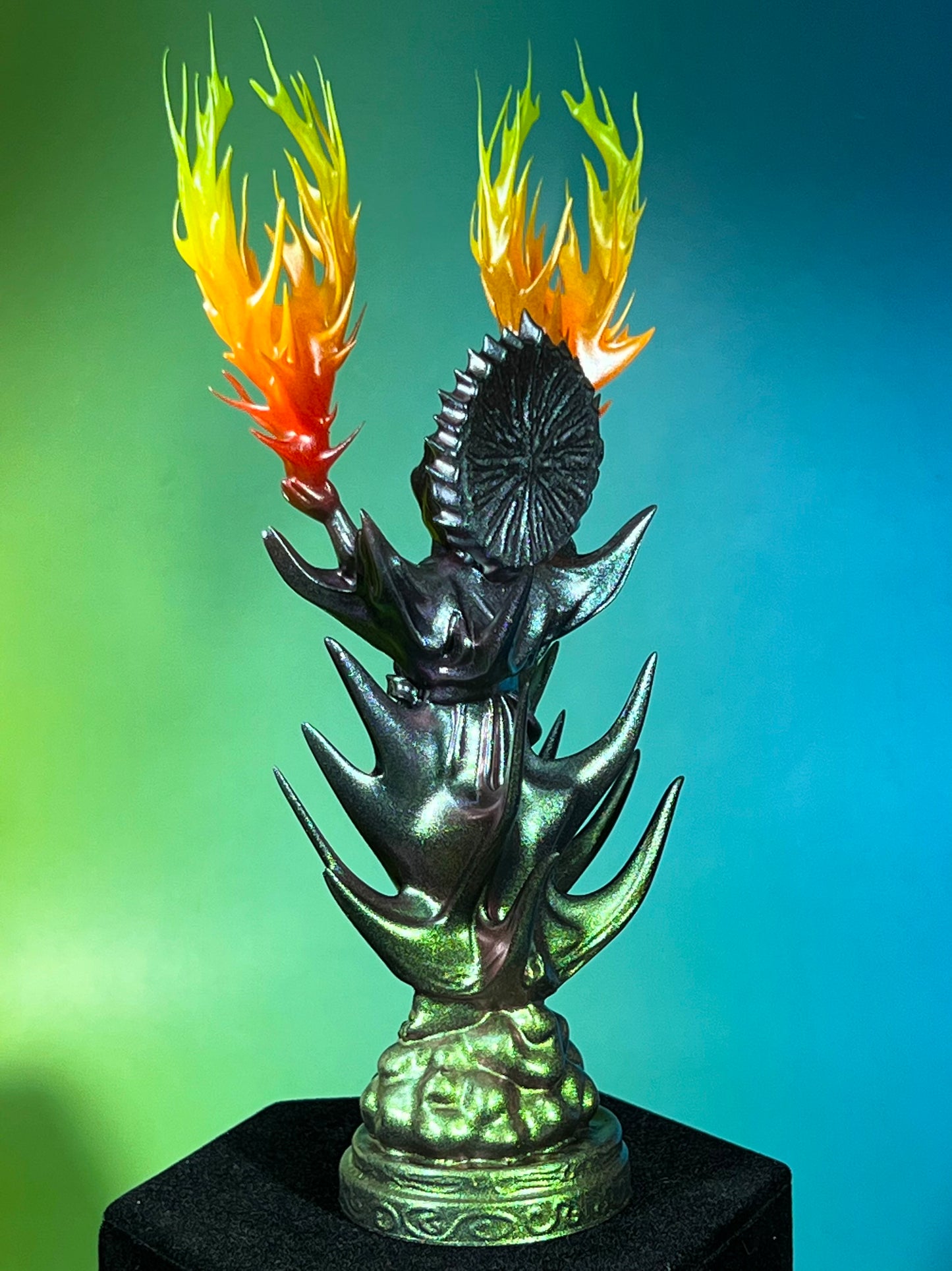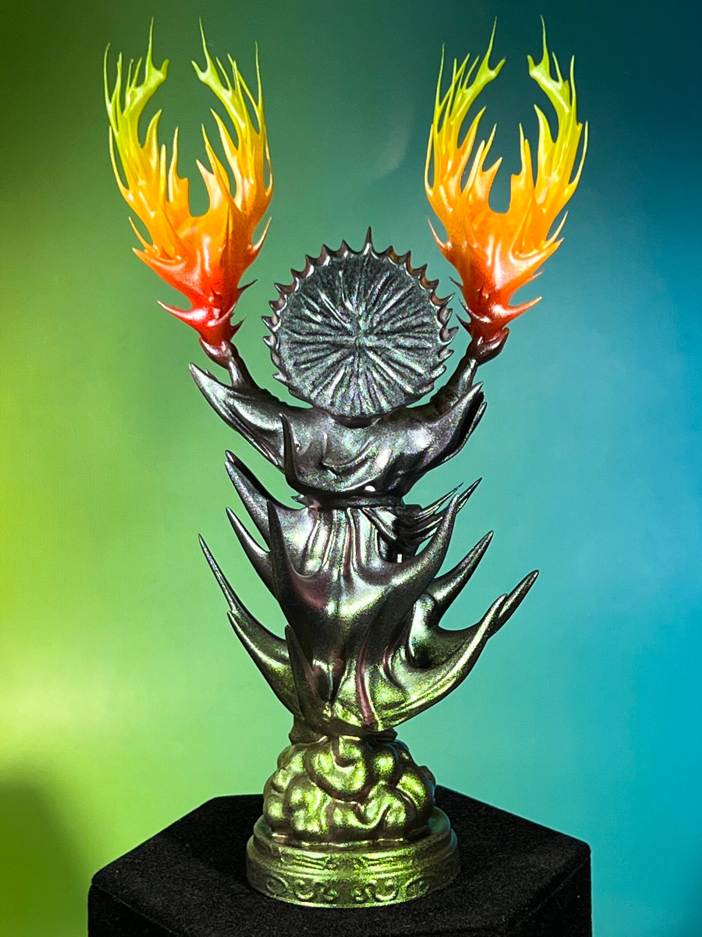 Resin printed, painted in color shifting and UV reactive neon colors. 7”