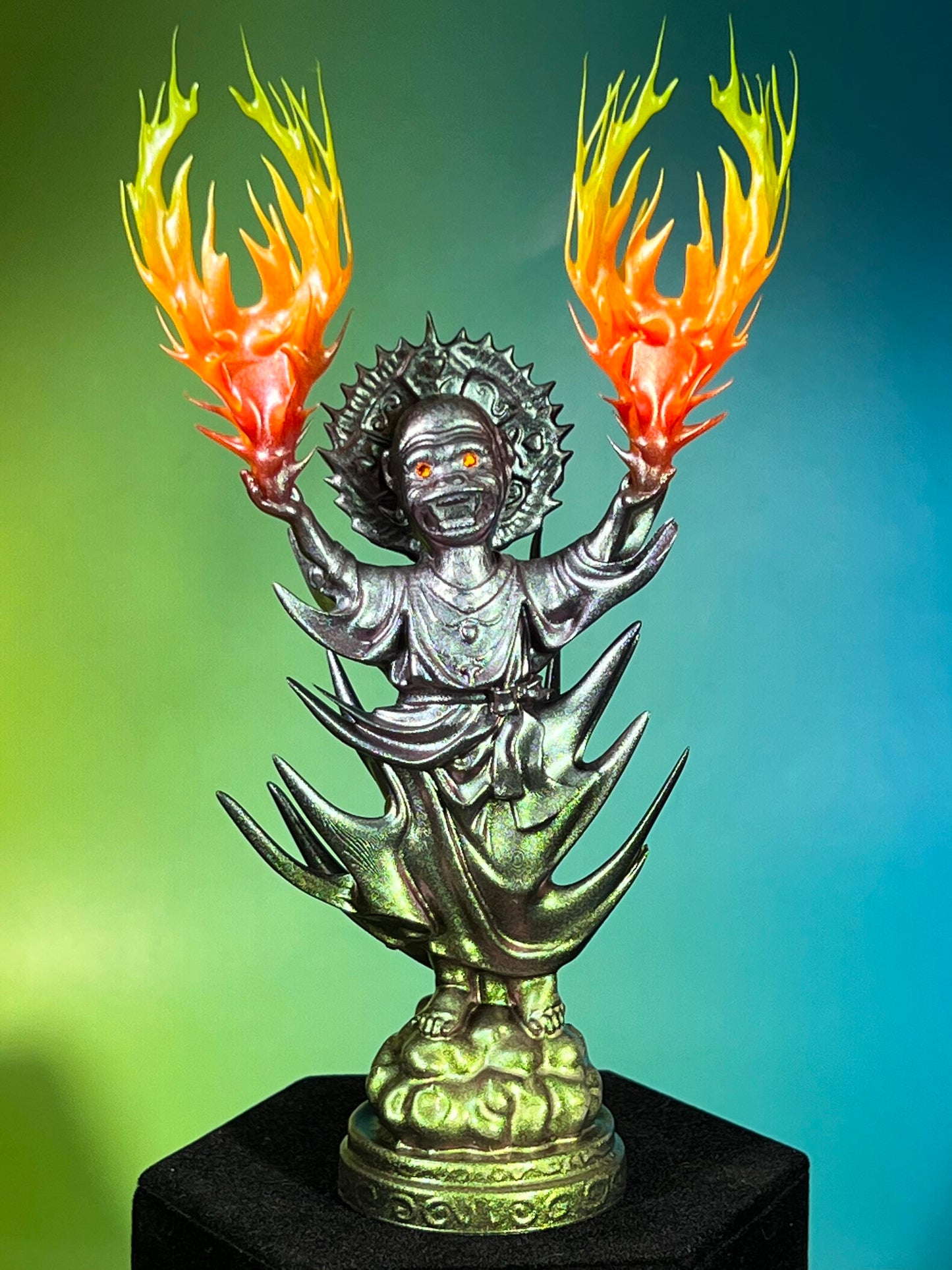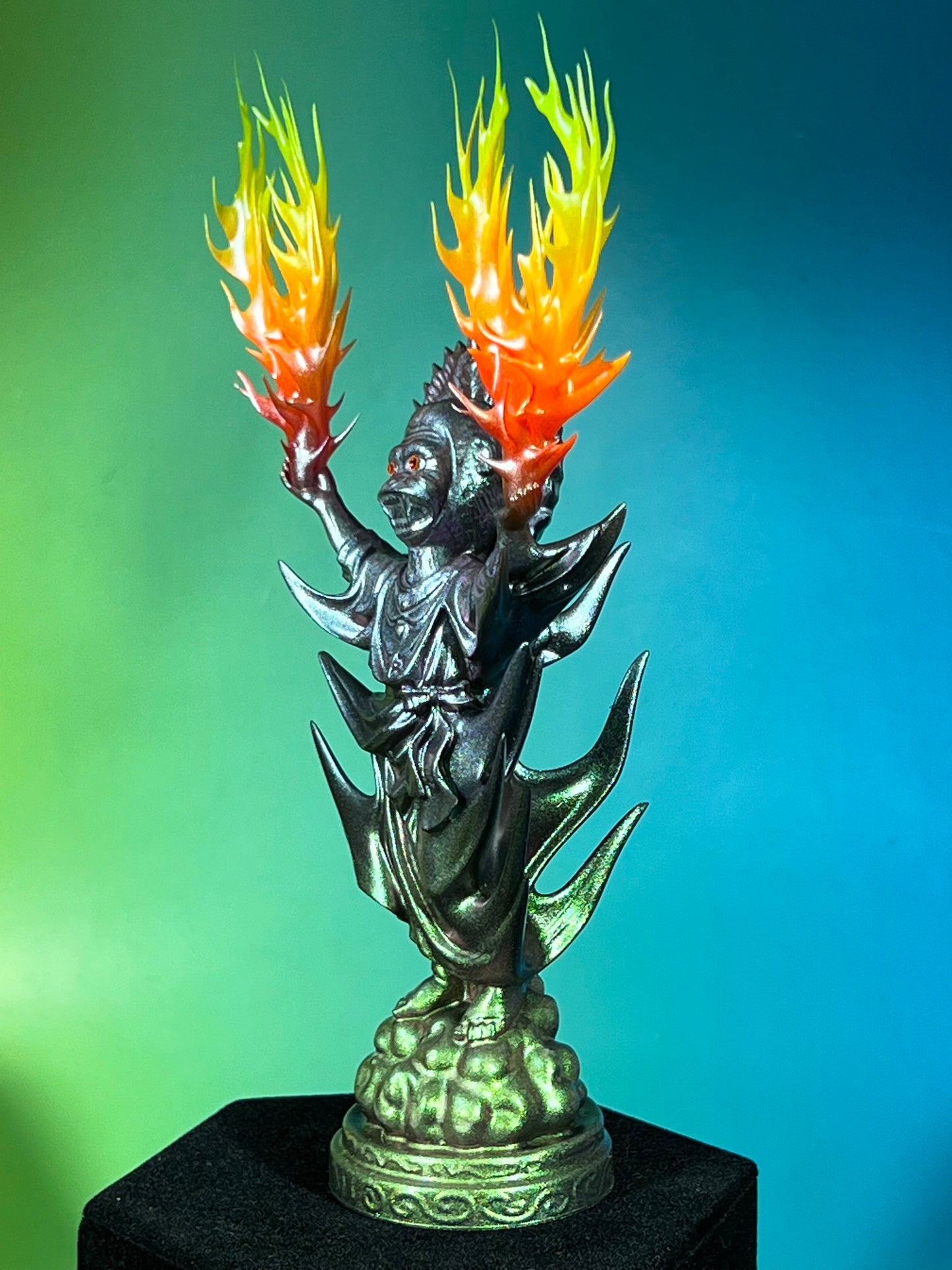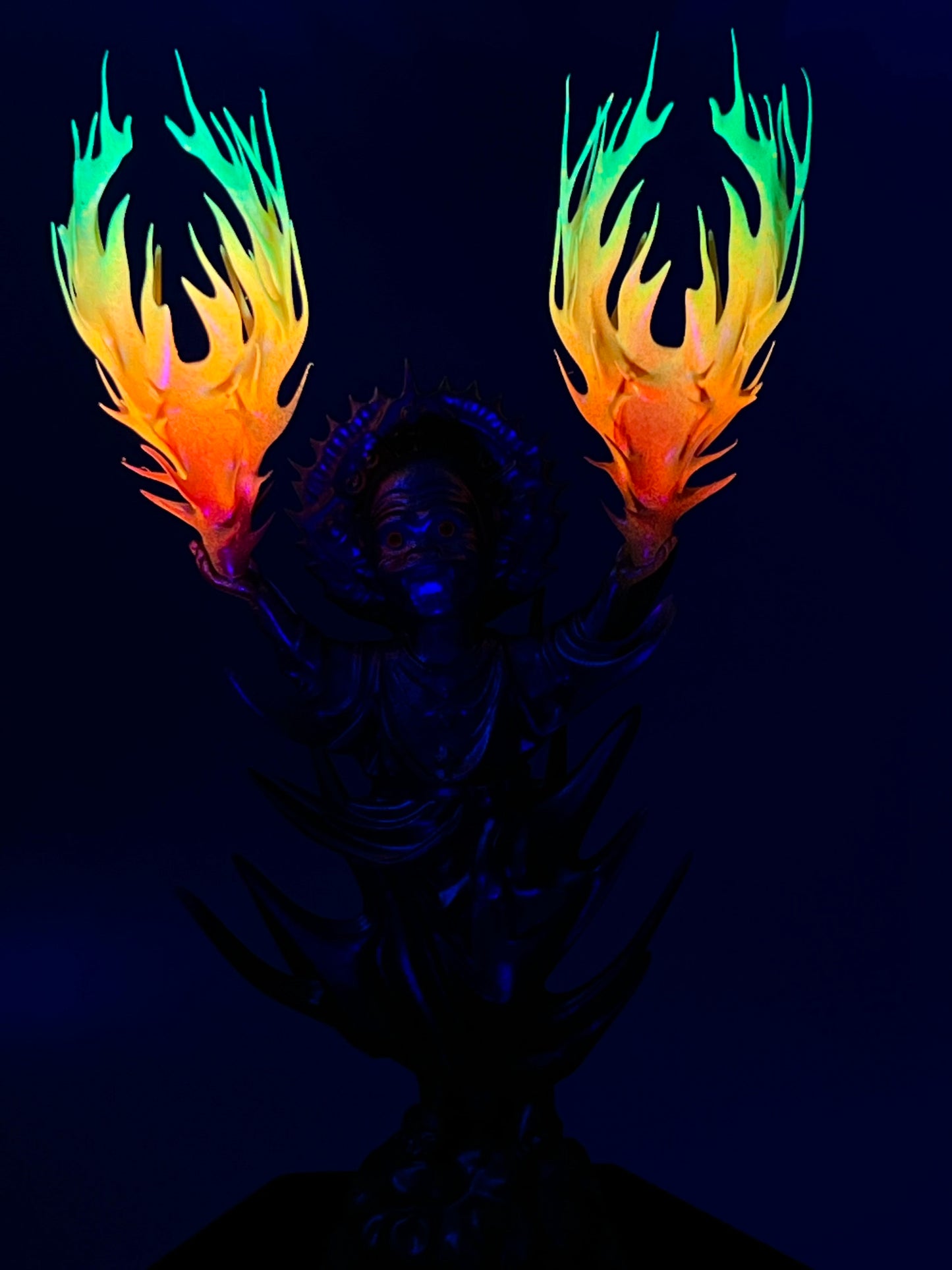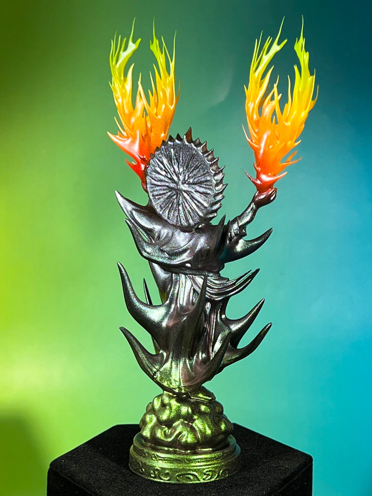 Resin printed, painted in color shifting and UV reactive neon colors. 7”