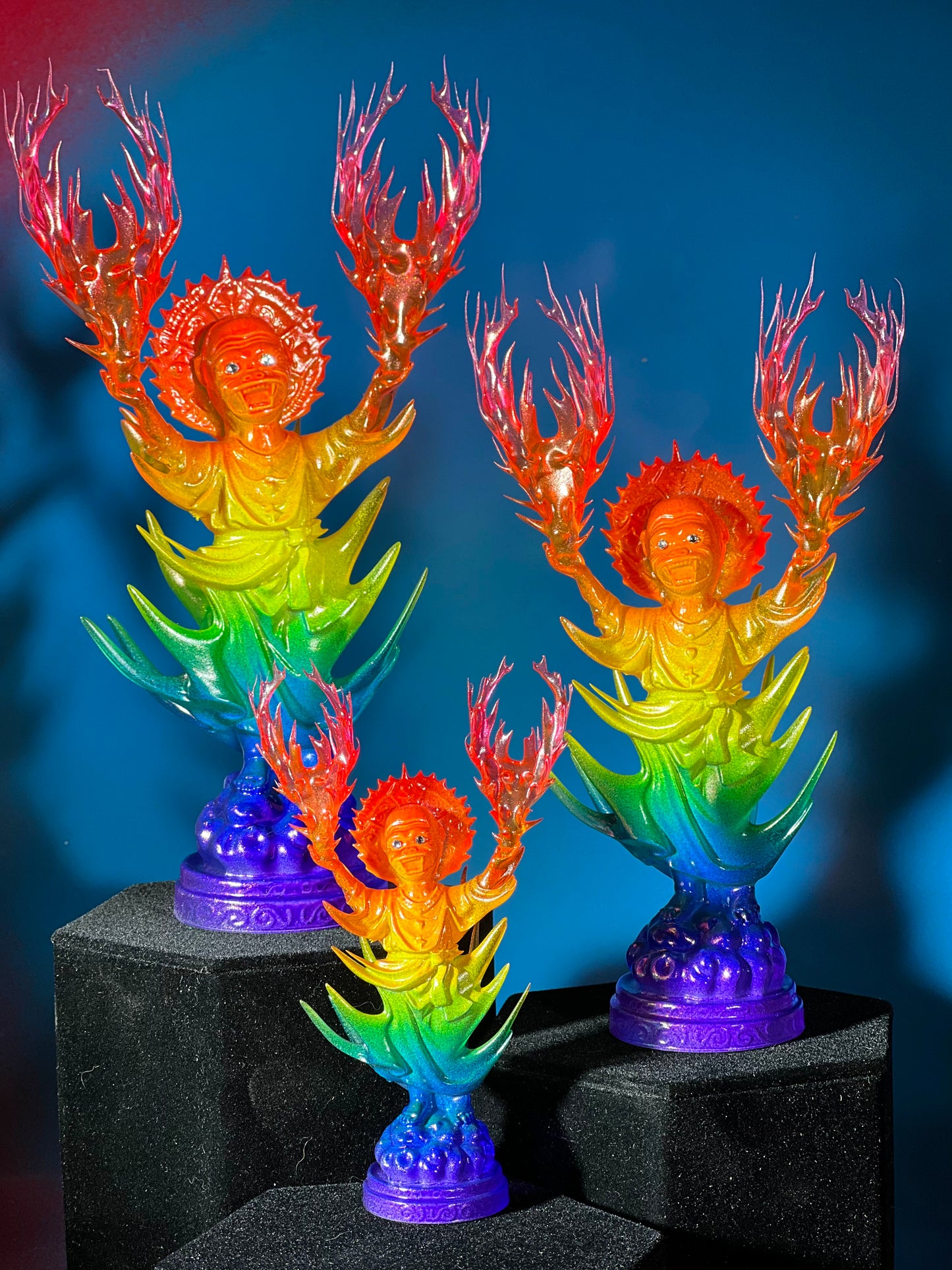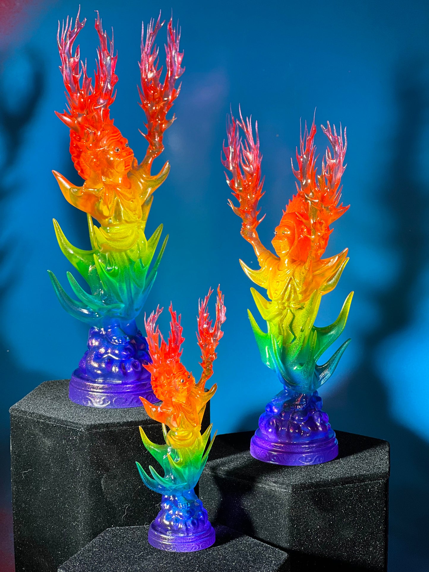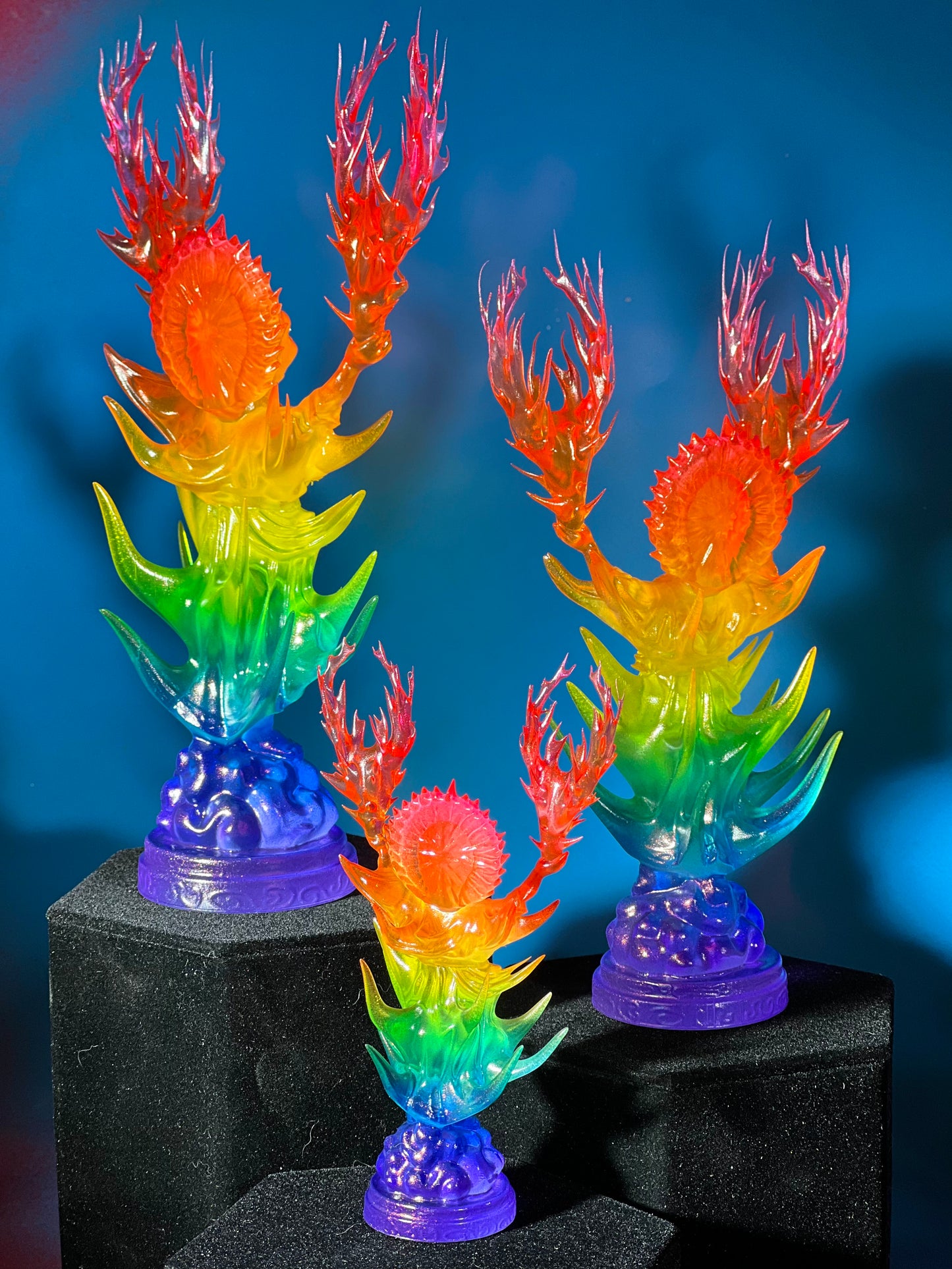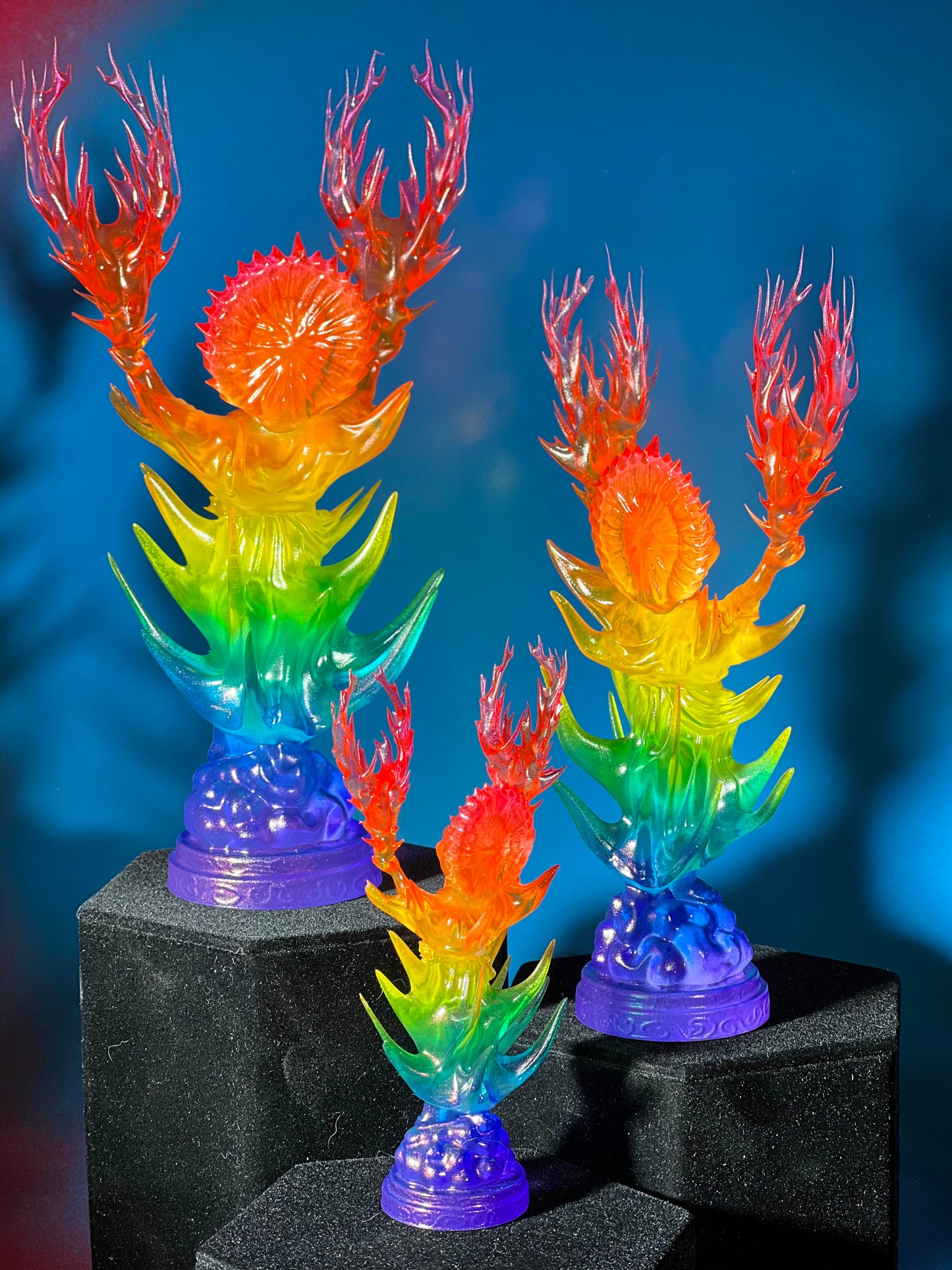 Resin printed, painted in transparent and opaque rainbow.