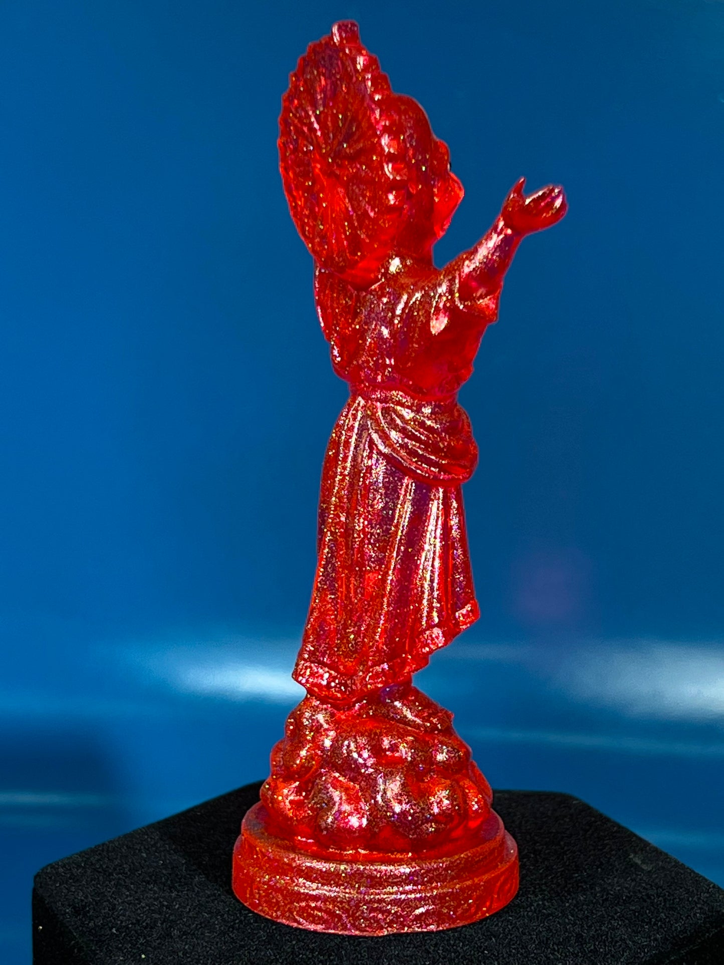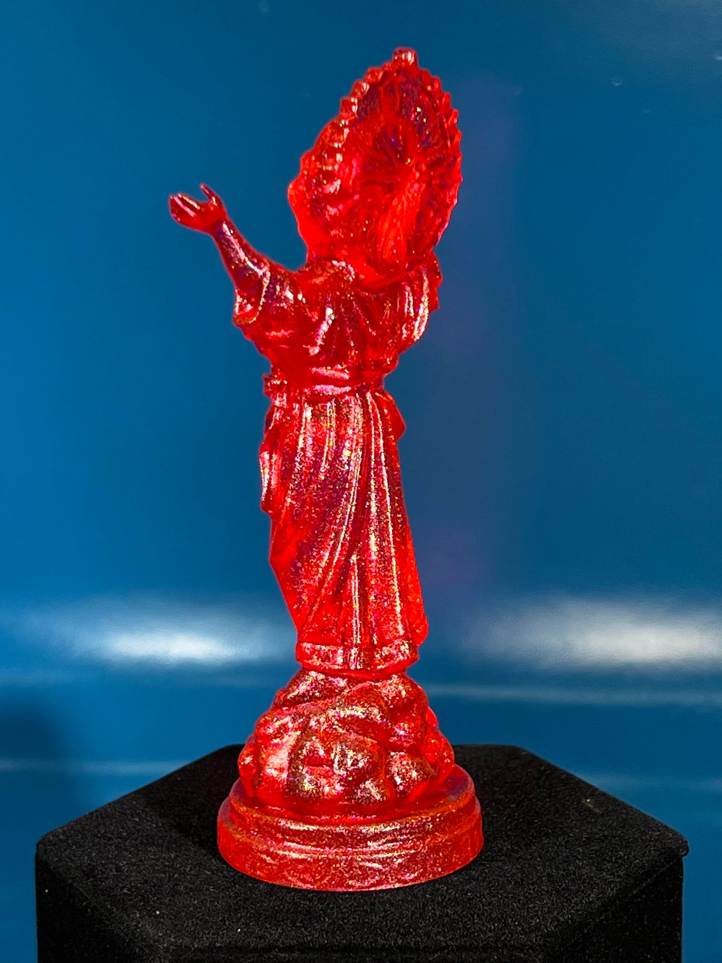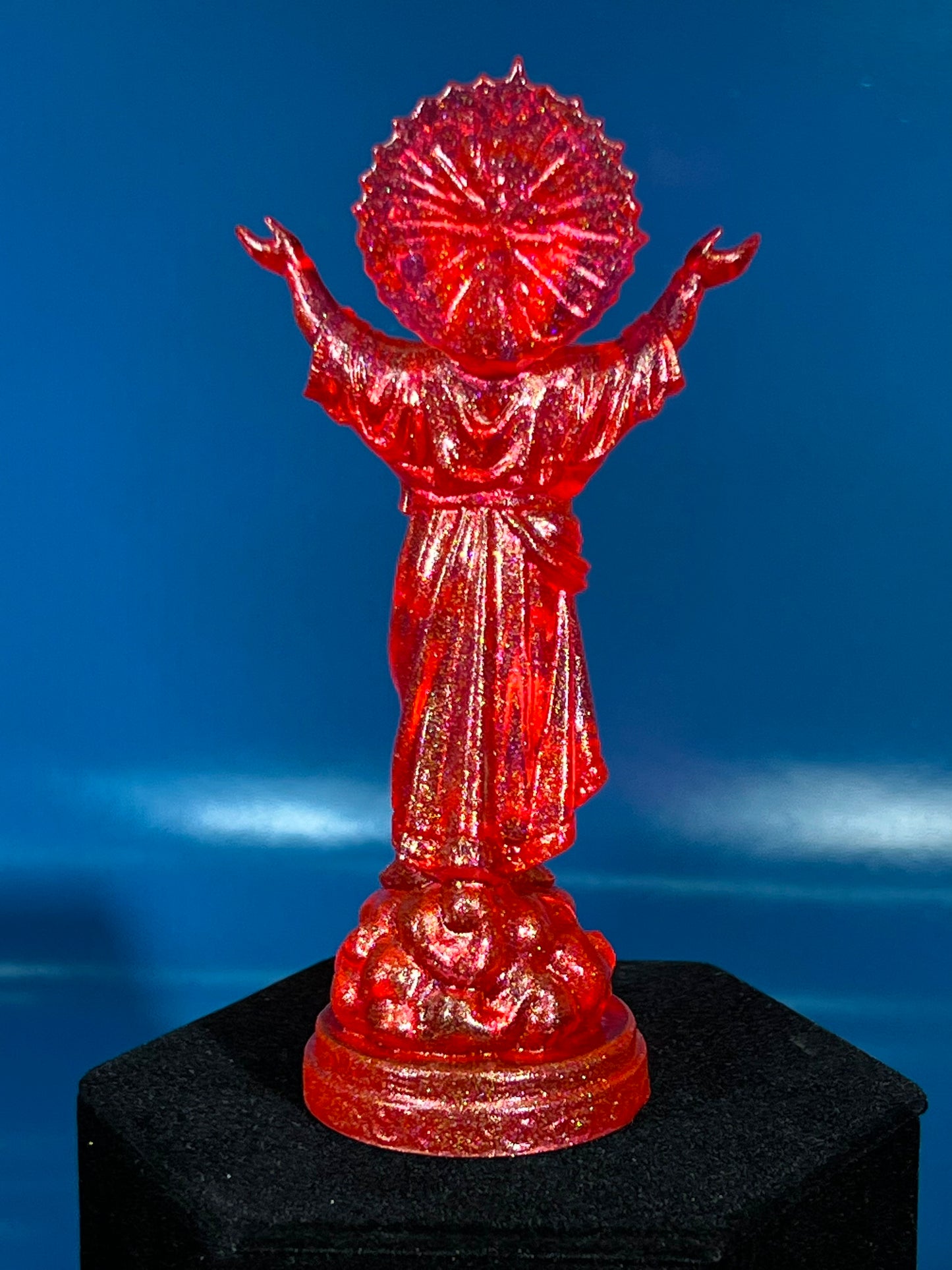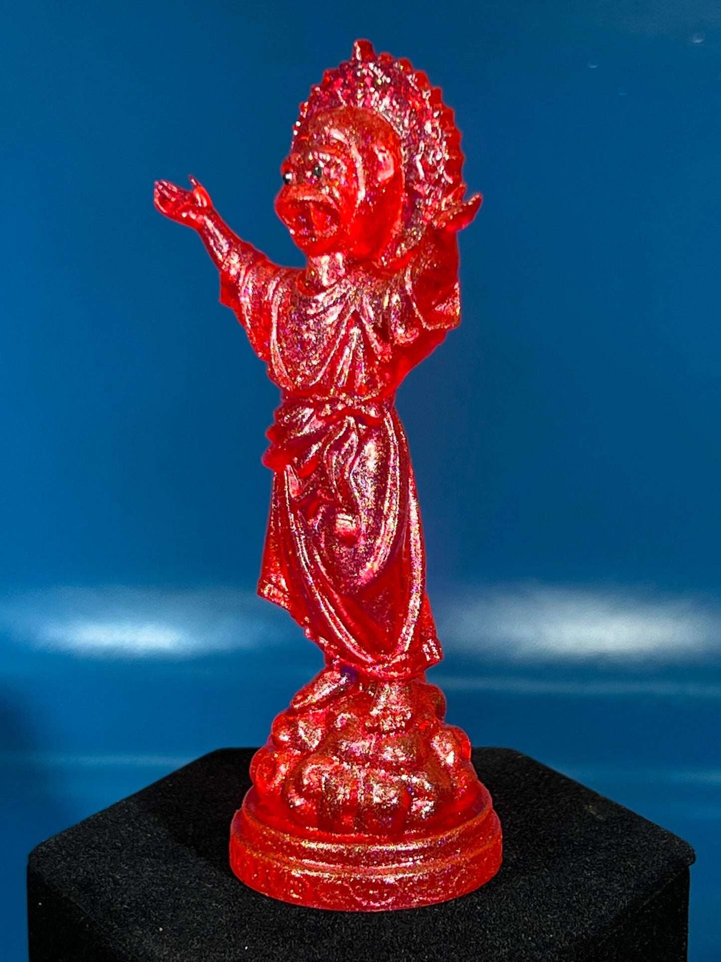 Resin printed, painted transparent with 4 colors holo glitter. 5”