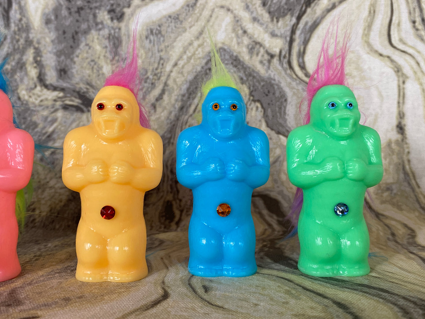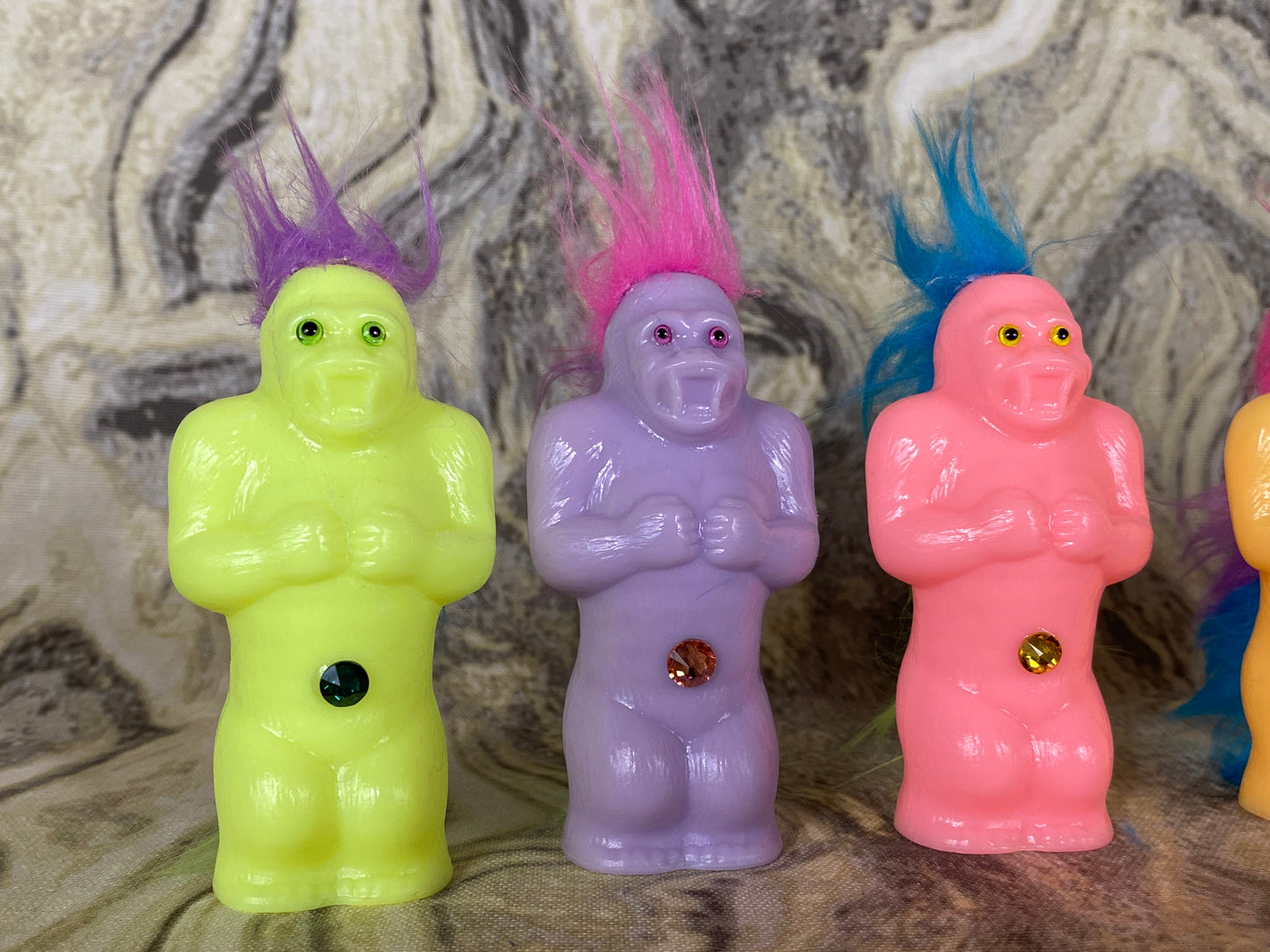 Resin printed in plant based resin with hand painted glass eyes and a single rhinestone. Respectable.