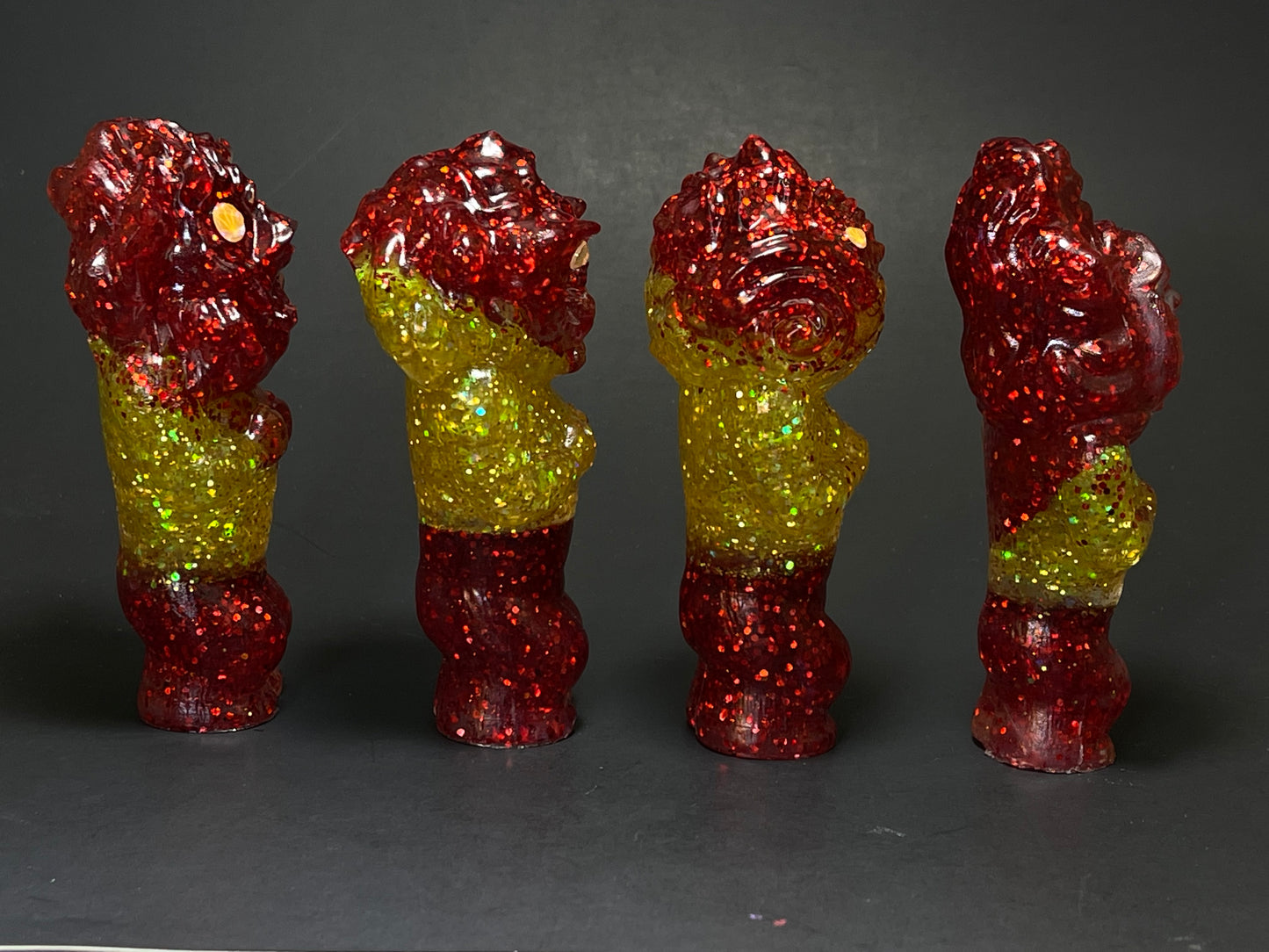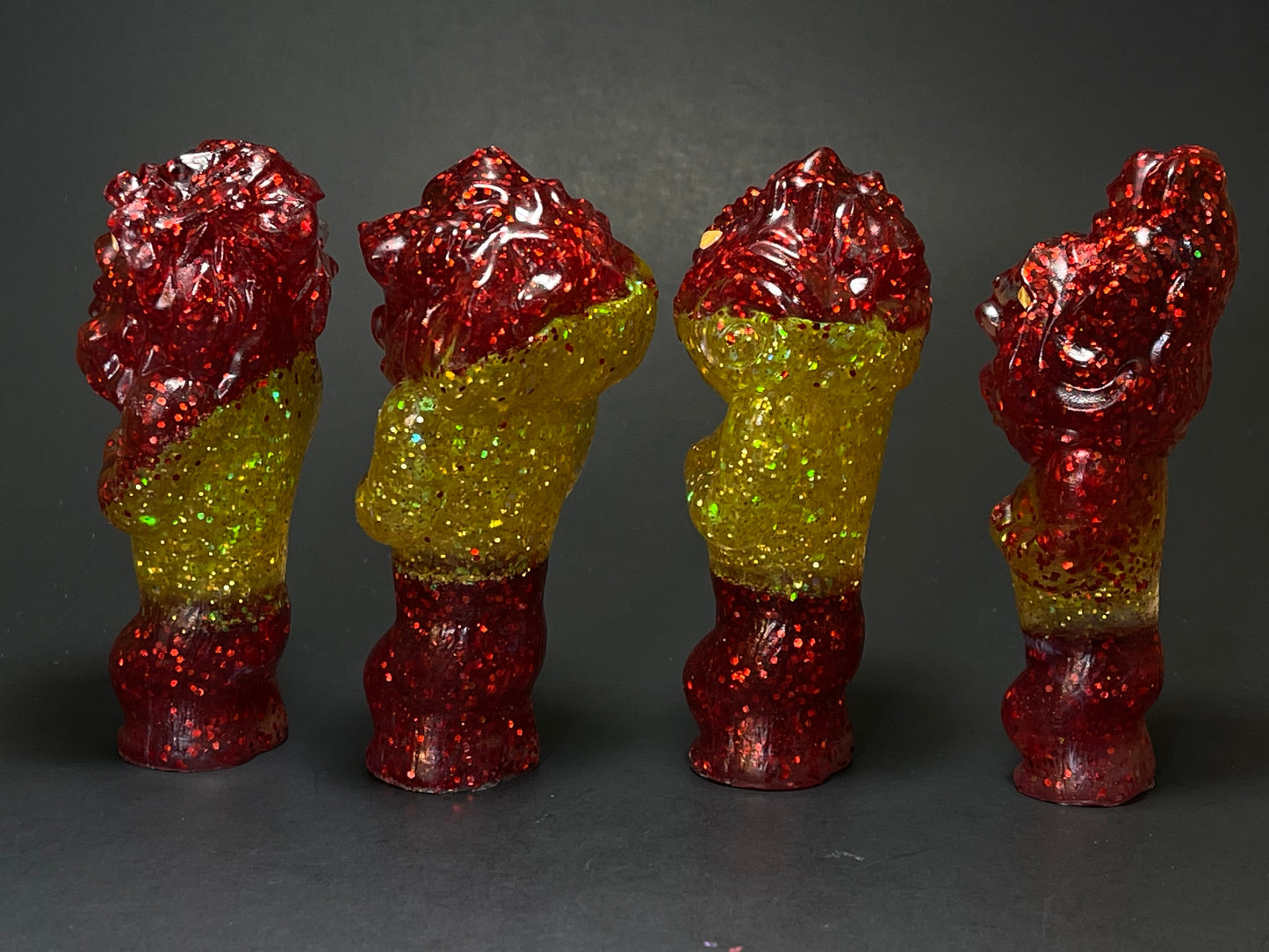 Full set of The Space Revenge Squad resin cast in red and yellow/gold glitter. Revenge is only a breath away with The Squad on your side.