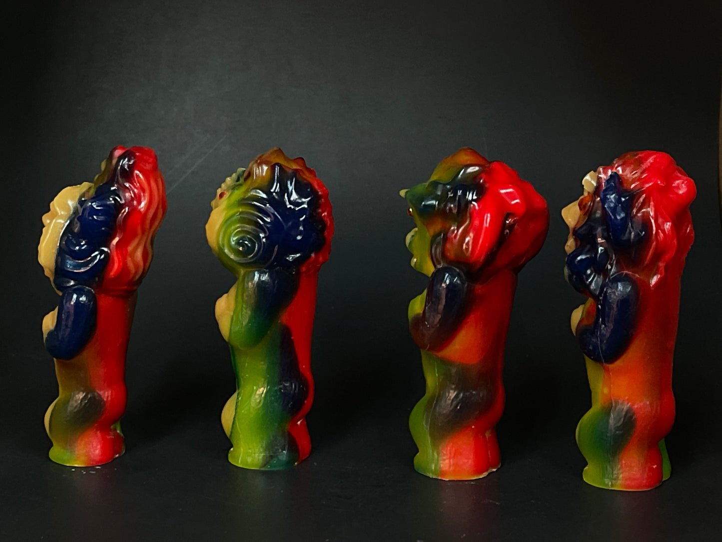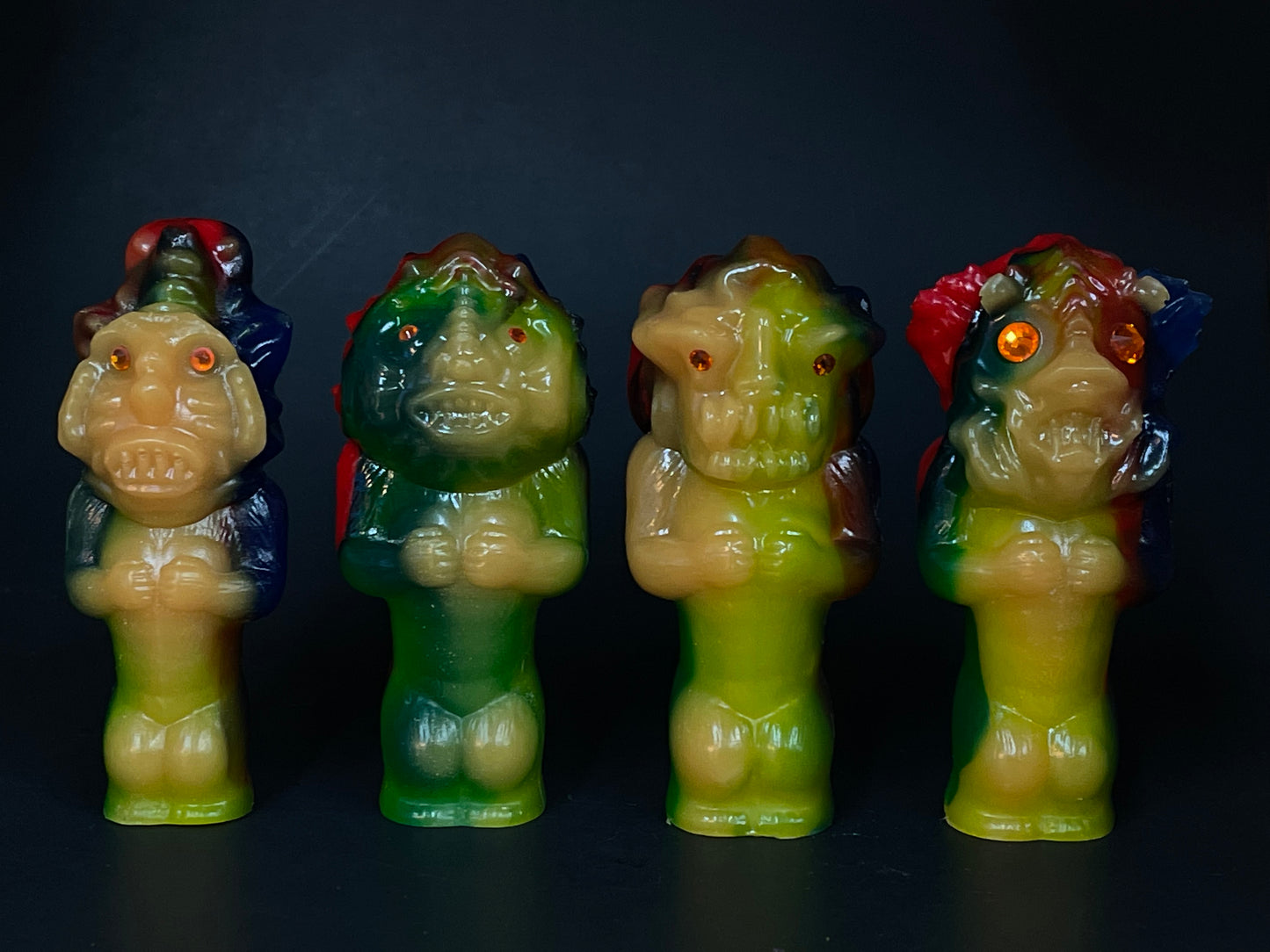 4 resin cast figures in 5 colors, 100mm each. Seeking revenge via deep meditation and contemplative gestures.