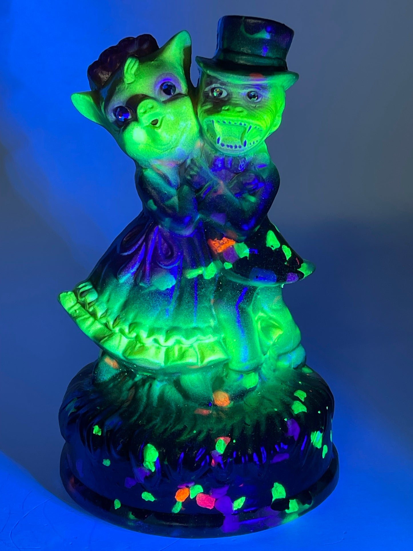 Cast with a mix of black and fluorescent rocks. Highlighted in yellow and pink. UV light reactive.